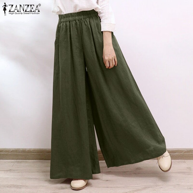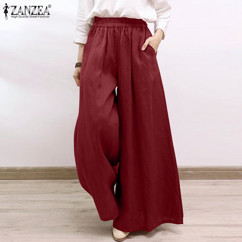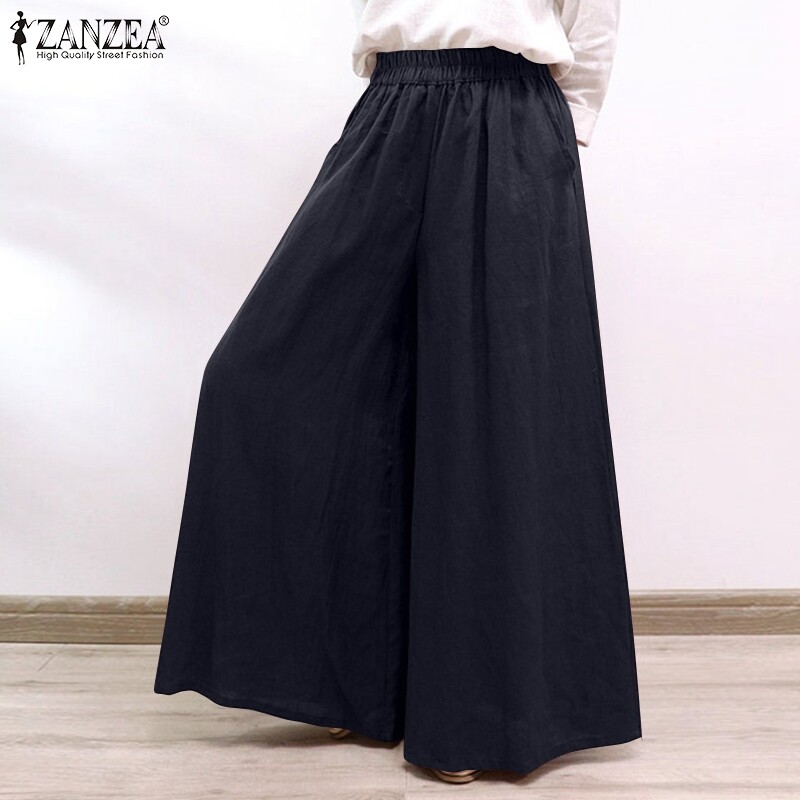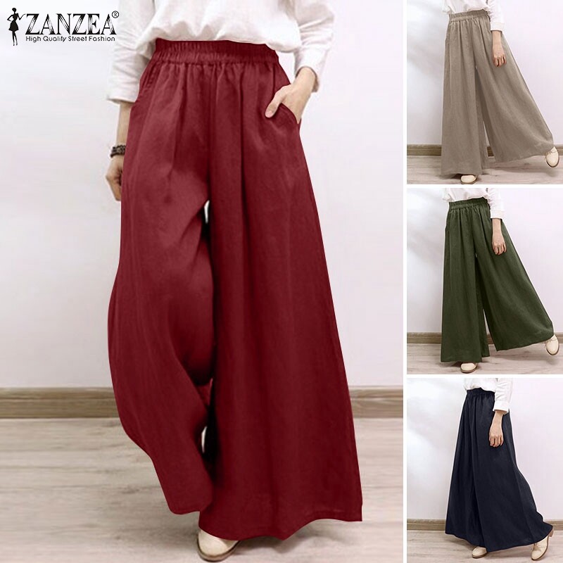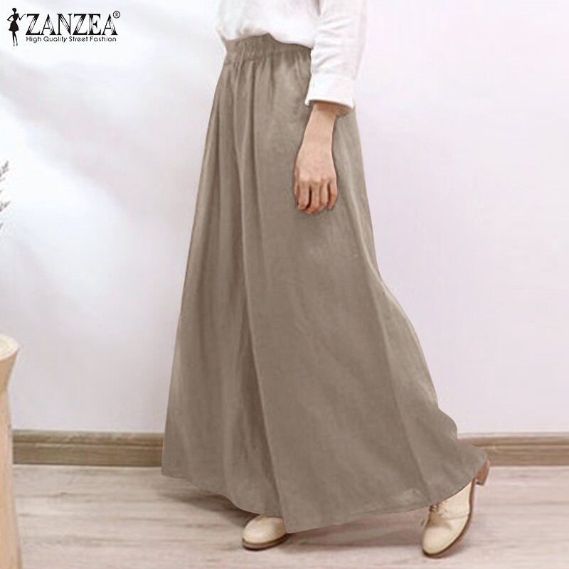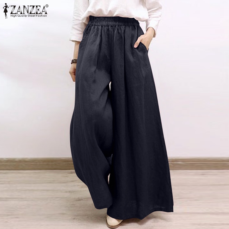 Zanzea妇女休闲宽松的纯色薄裤宽腿弹性腰部长裤
