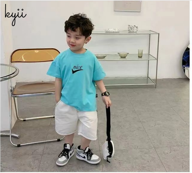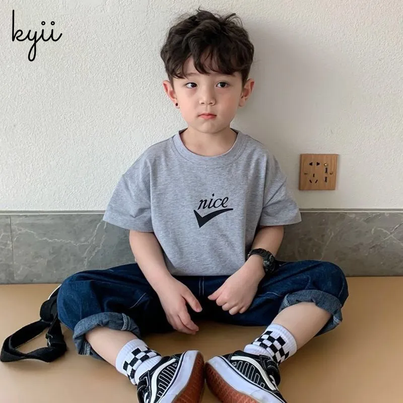 Kyii棉花儿童短袖T恤男孩卡通韩国版画顶级kyb015