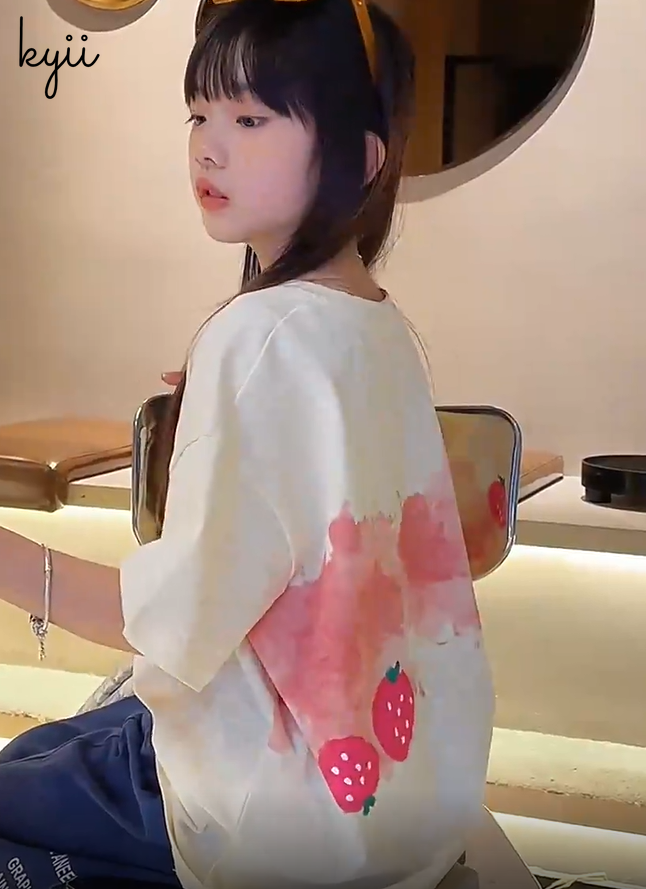 Kyii Girls Summer Summer Versatile T恤顶级KY22079