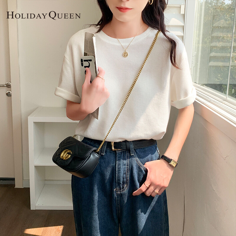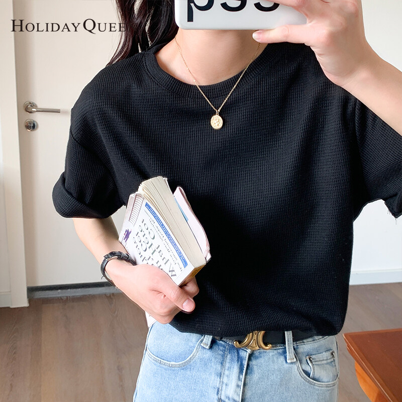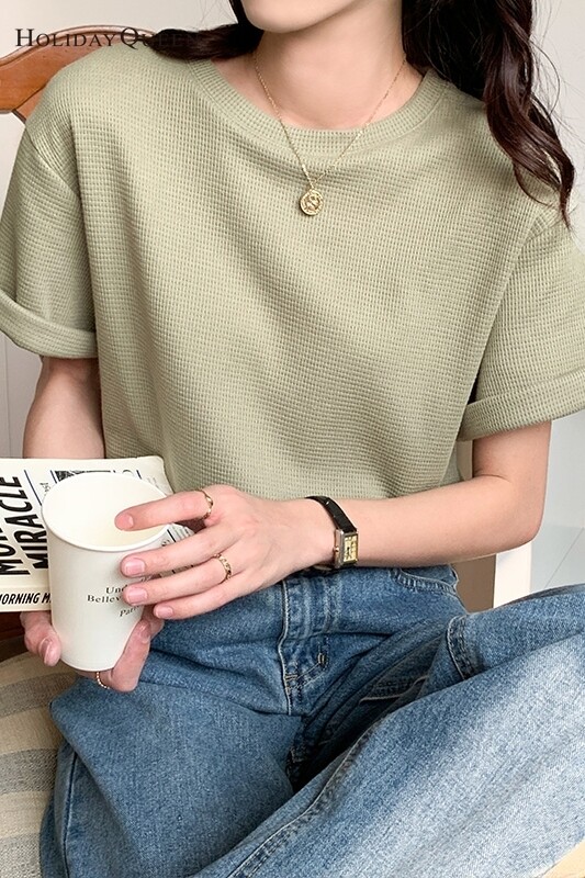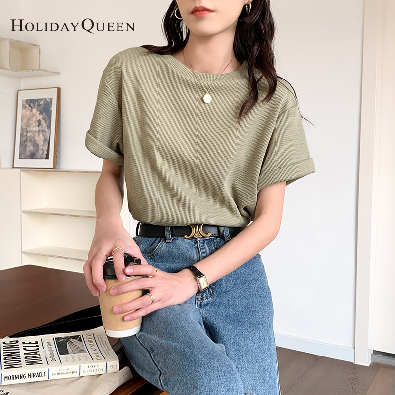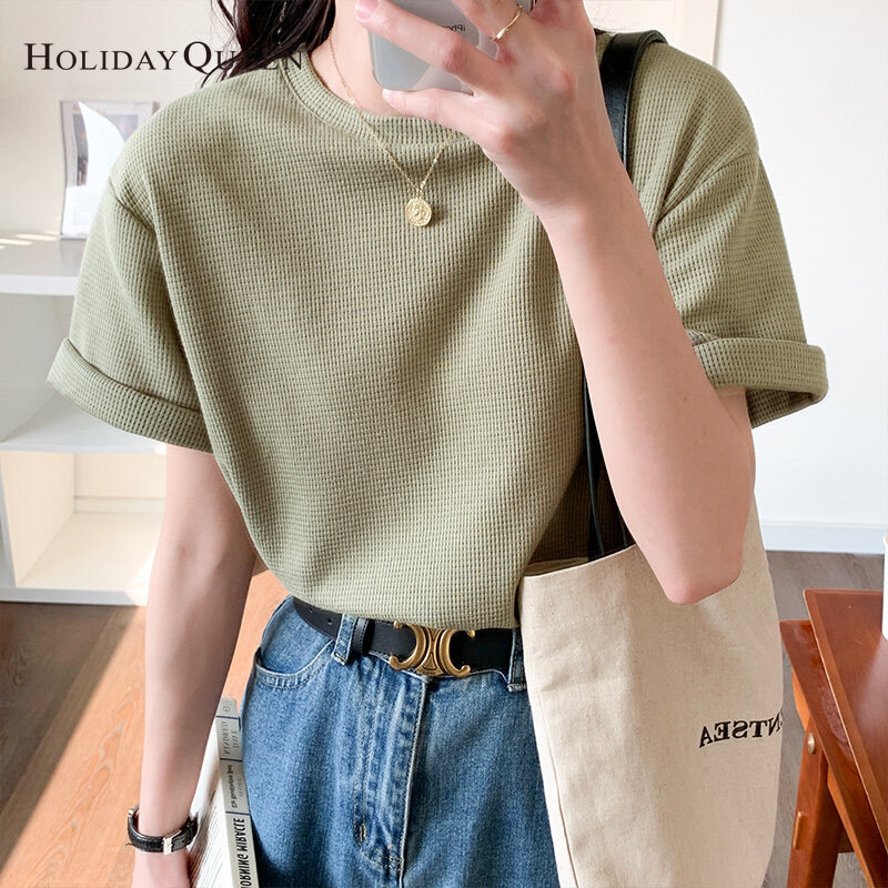 HolidayQueen抹茶绿色短袖T恤女子韩国版2022夏季新华夫饼松散全赛顶级S M L XL免费送货HQ1261