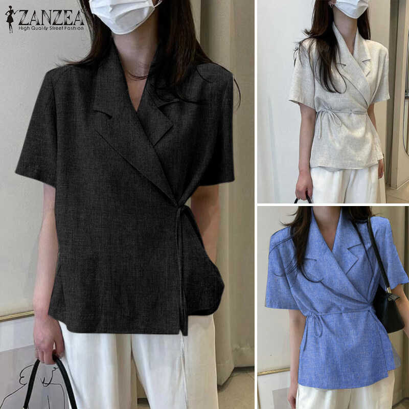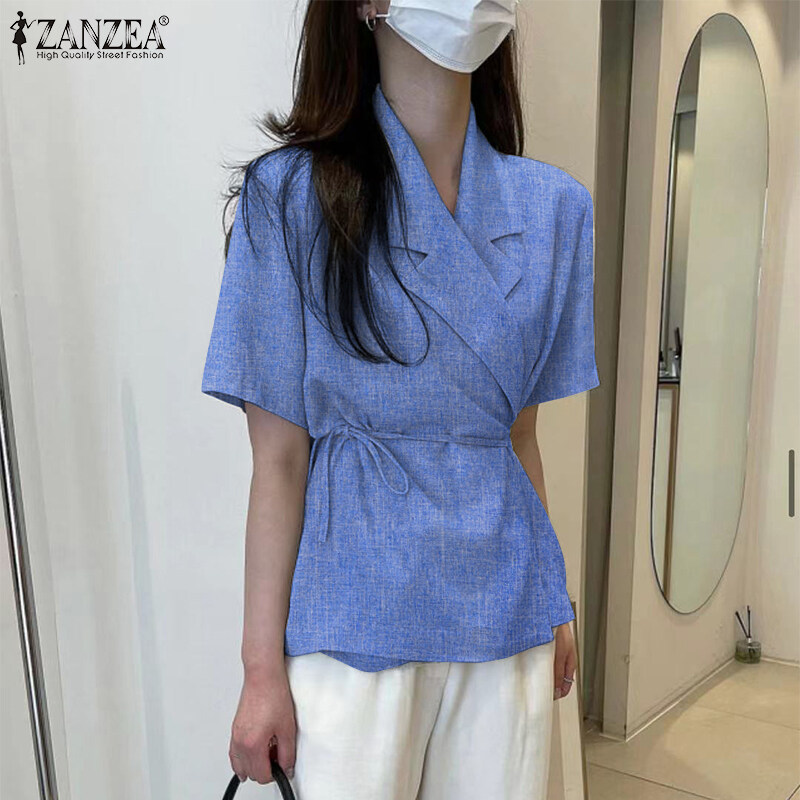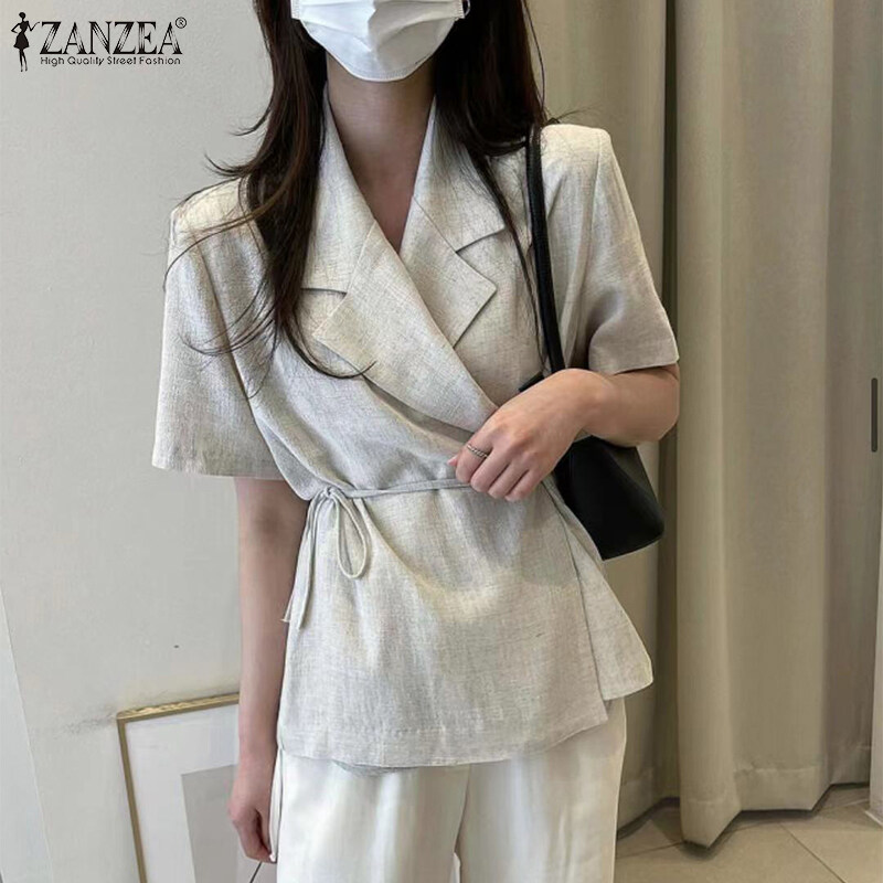 Zanzea韩国风格的女士短袖Slims商务办公室平原开拓者西装