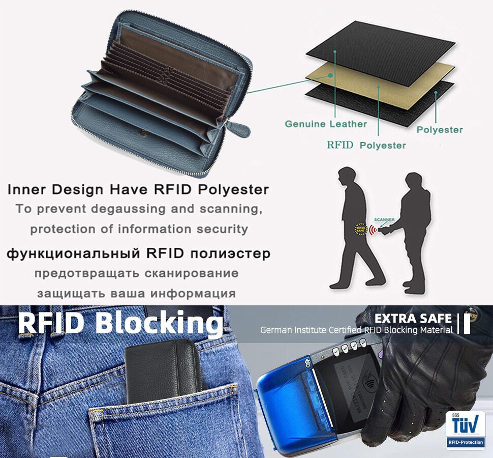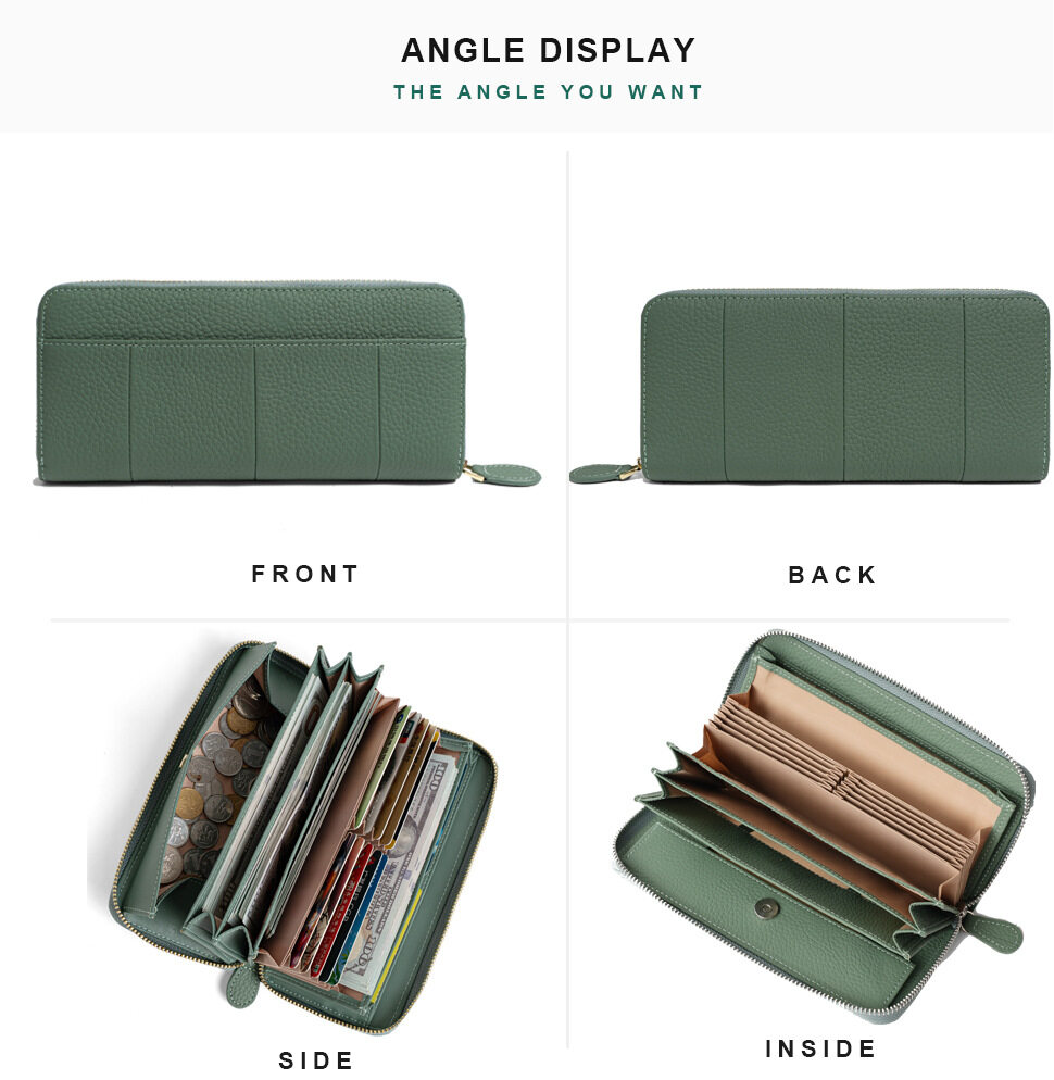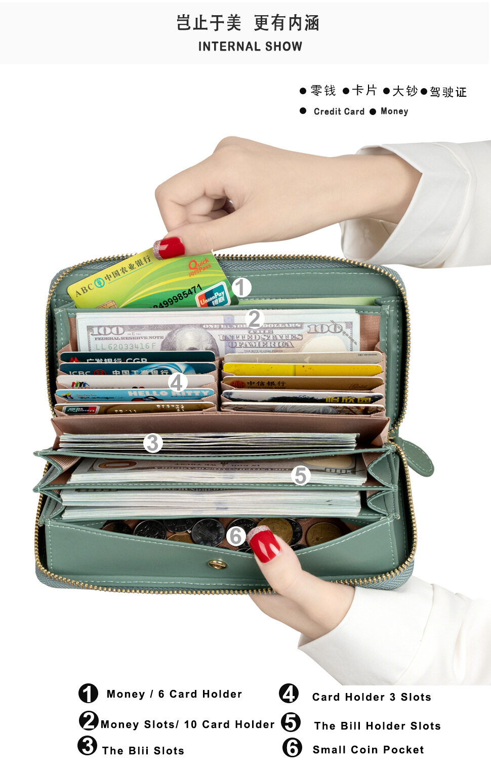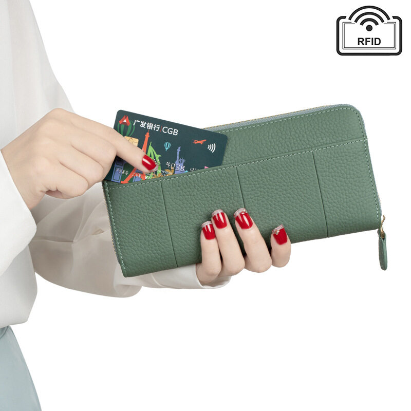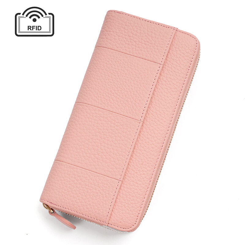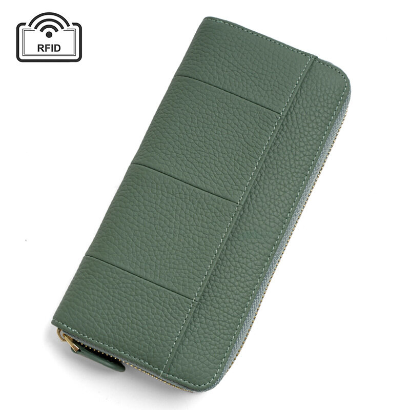 皇家装袋机新的RFID拉链长钱包女士真正的牛皮革大帽子女士离合器袋多功能休闲女子卡持有人硬币钱包手提袋