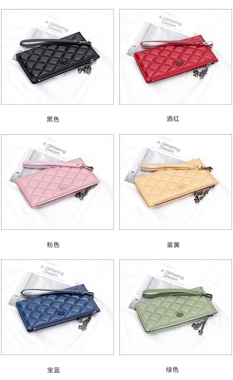皇家袋装妇女长钱包软羊皮皮革女性时尚手机钱包quilted缝模式卡架钱包
