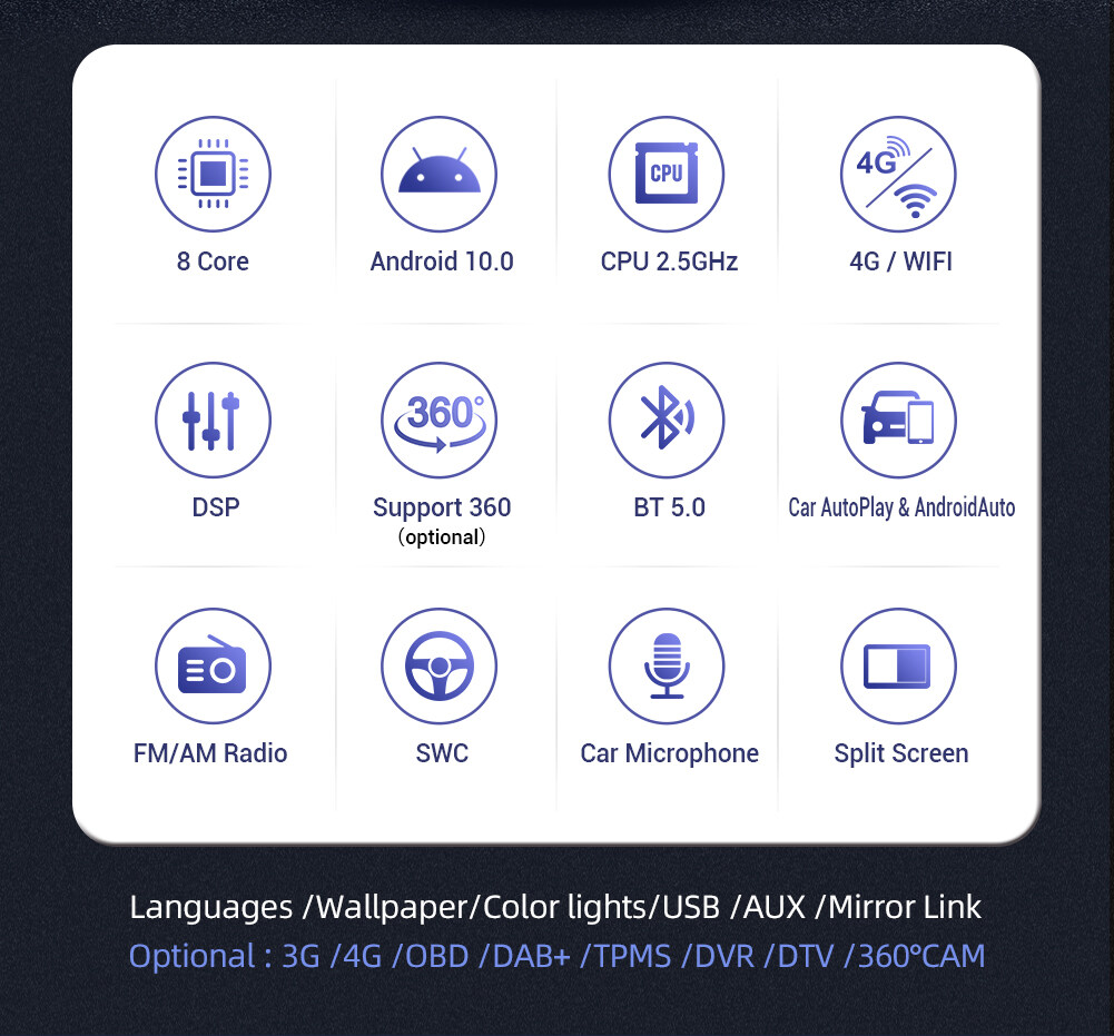 10:Car Internet: built-in wifi, support 3G/4G/ Modern (need extra pay it)