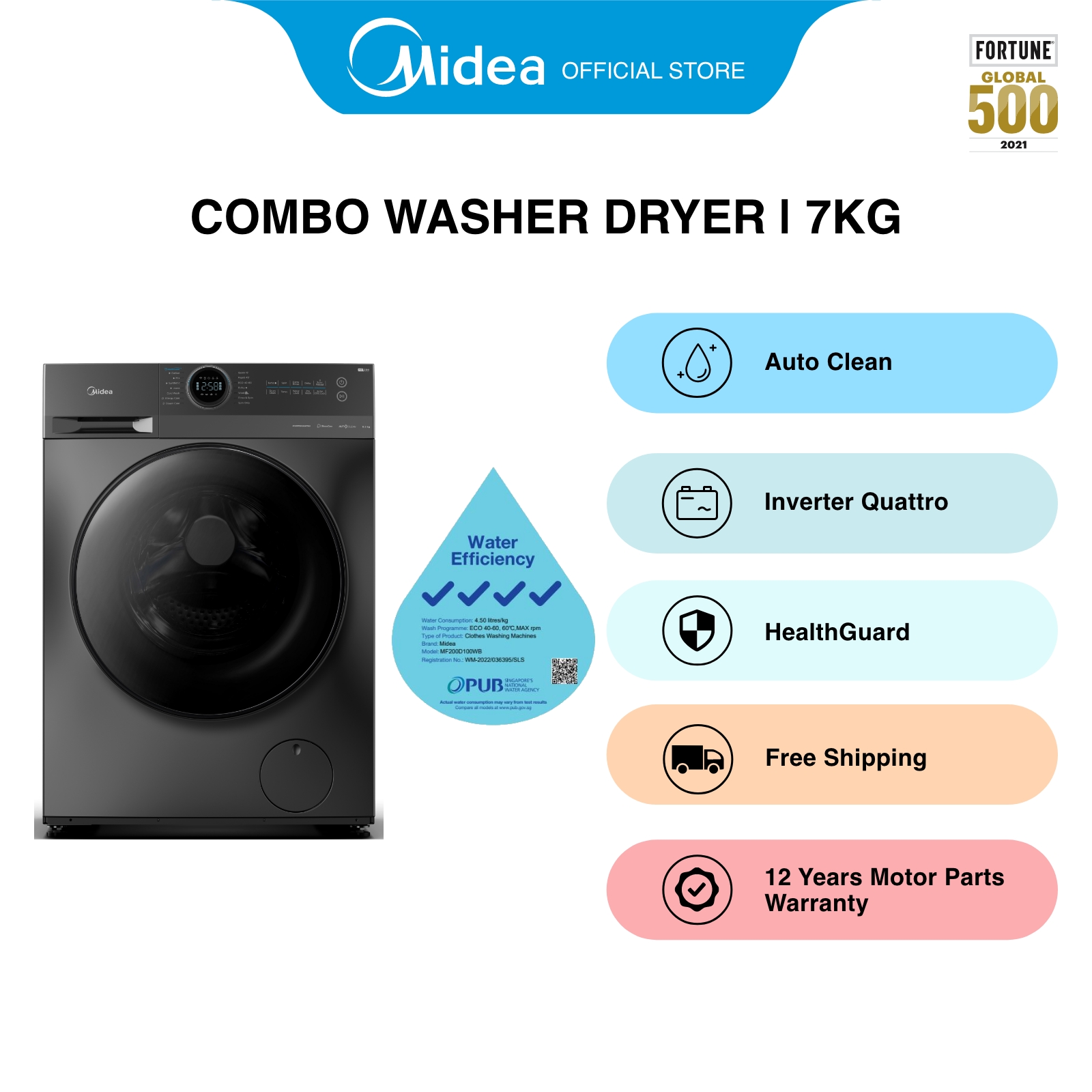 [笨重] MIDEA MF200D100WB组合垫圈干衣机(10kg Wash / 7kg干燥),水效率4滴答