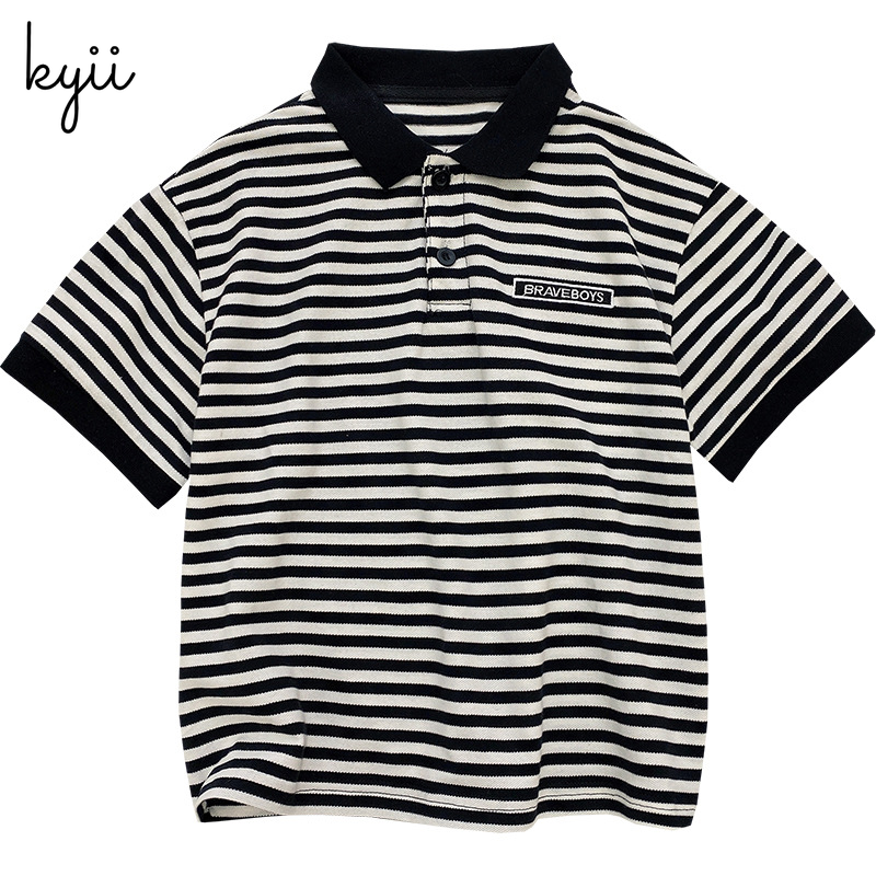 Kyii条纹短袖休闲男孩棉花夏季松散衬衫韩国衬衫Kyb041