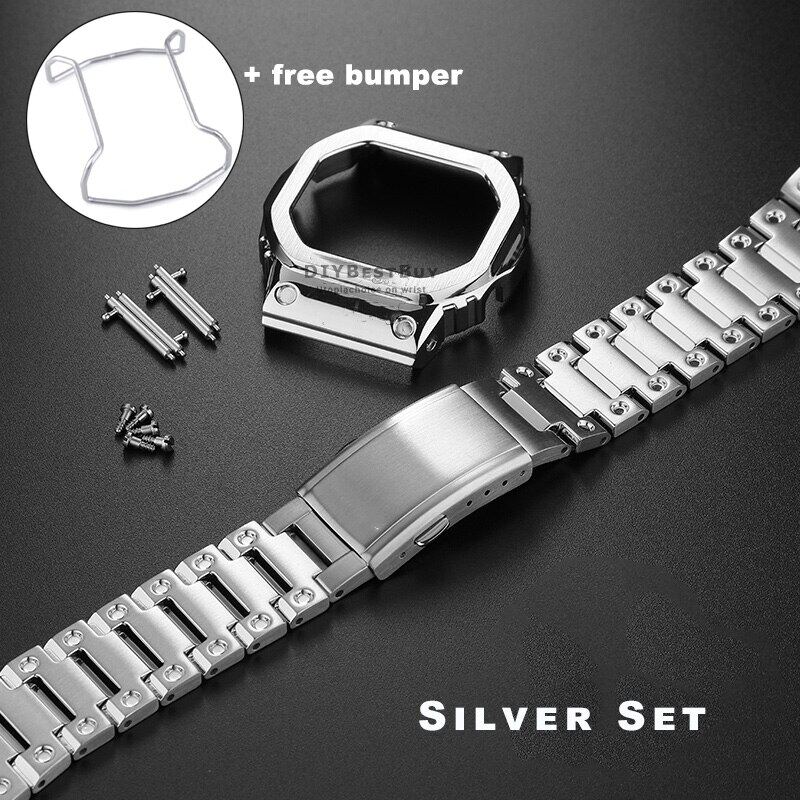 #Casioak G-SHOCK Metal Mod Kit Steel Strap & Bezel Replacements For DW5600 GWM5610