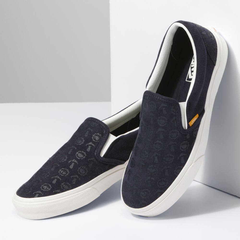 The Trippy Cord Classic Slip-On features sturdy low profile slip-on canvas uppers with the iconic Vans checkerboard print, padded collars, elastic side accents, and signature rubber waffle outsoles.