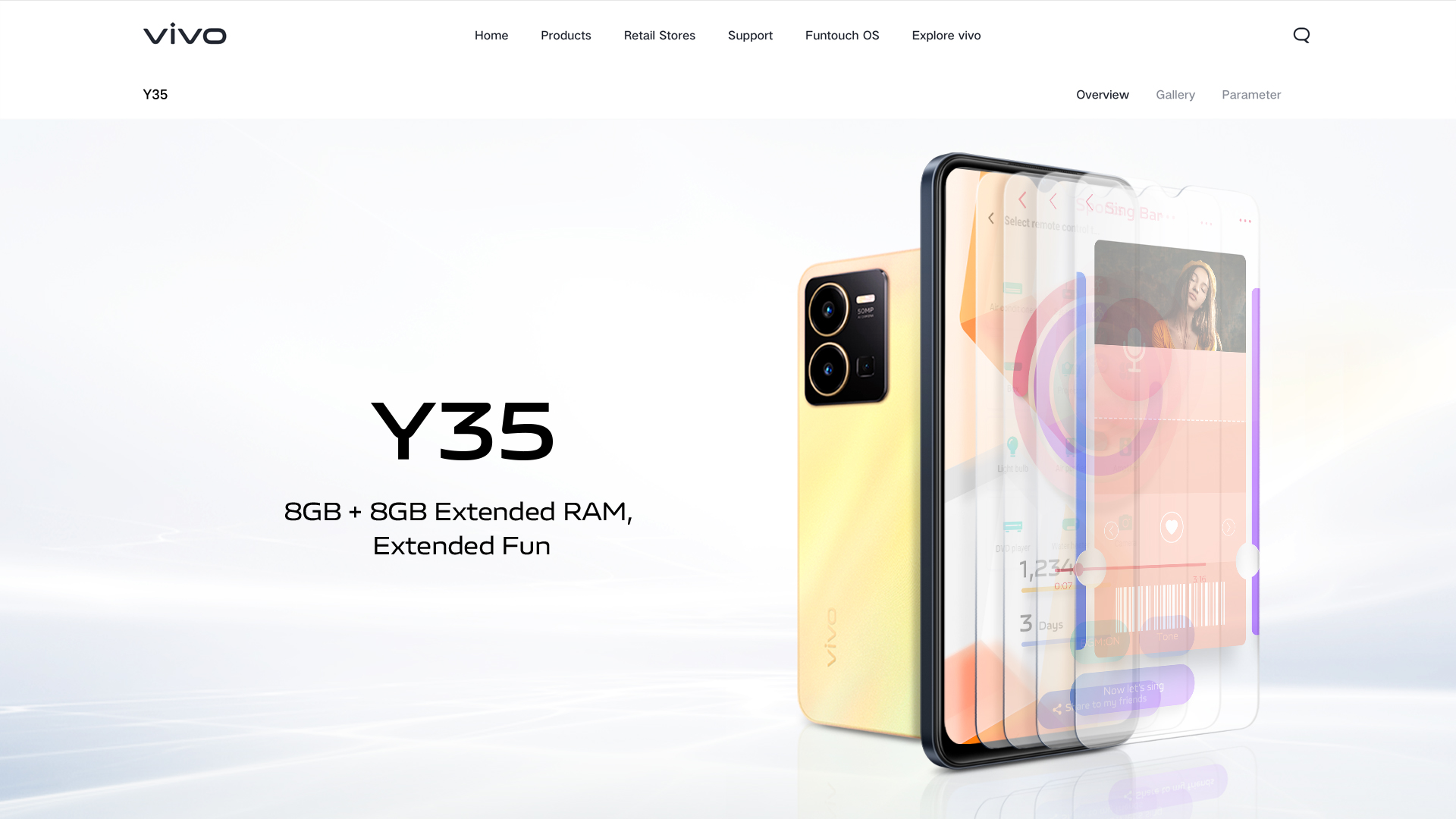 Vivo Y35 [8GB + 8GB / 128GB] / 5000 mAh + 18W快速充电 / 44W闪存 / 50MP主摄像头