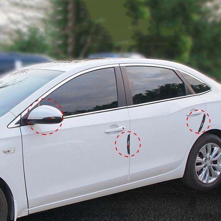 Product Name: Car Door Stickers Size: 15.7x1.2CM, 15.7x1.3CM Color: Carbon Fiber Black Material: PVC Quantity: 6 Pieces Installation Placement: Car door, rearview mirror Feature: 100% Brand new and high quality. It prevents your car from scratching If you need other logos, please contact us.