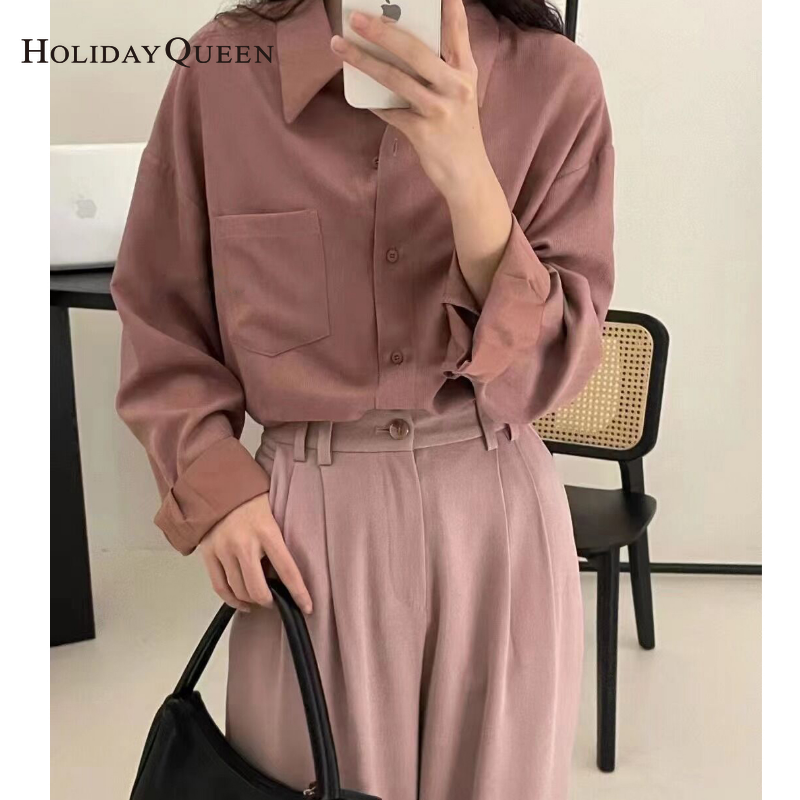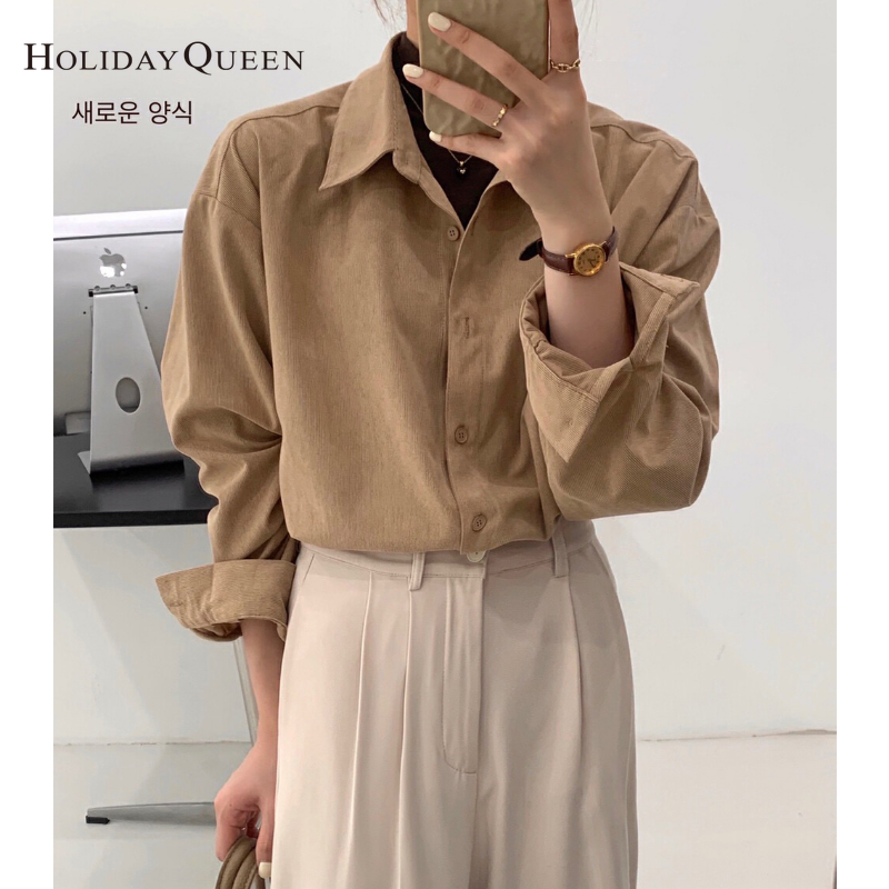 HolidayQueen韩国版秋季/冬季2022新的灯芯绒厚衬套长袖衬衫堆叠衬衫上衣免费送货hq1854