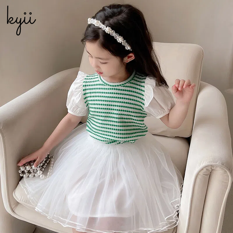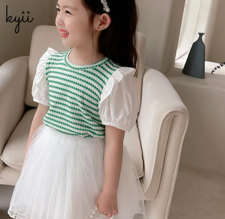 KYII女孩夏季儿童韩国圆颈衬衫多功能短袖top top kyii0036