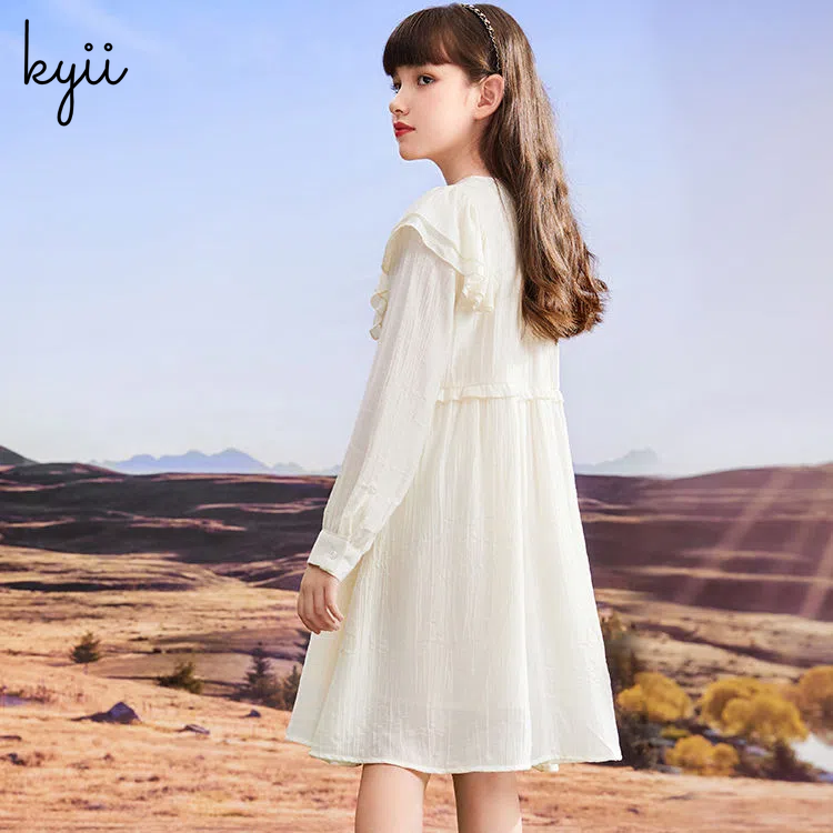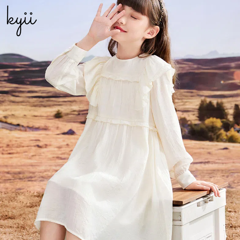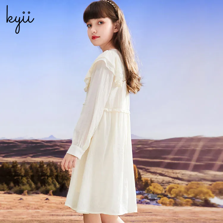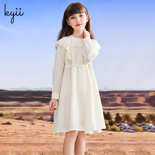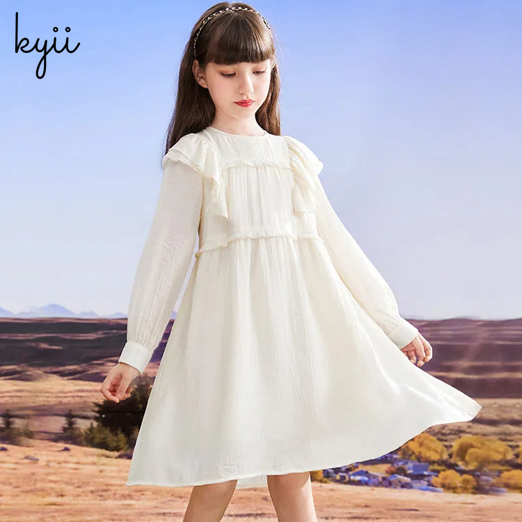 Kyii儿童女孩夏季圆颈连衣裙休闲宽松长袖连衣裙Kyii0046