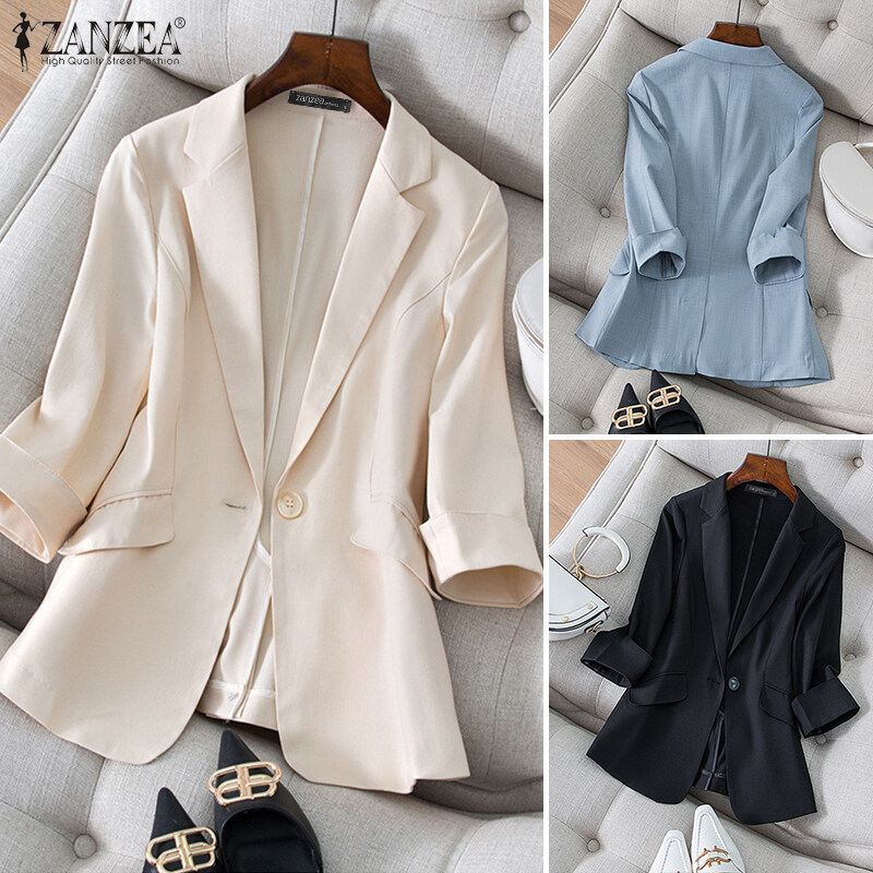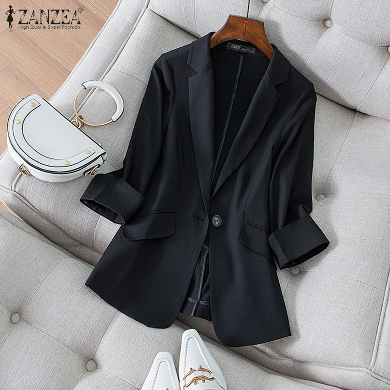 Zanzea妇女通勤Notch项圈3/4袖外套优雅女士办公室OL西装外套#2