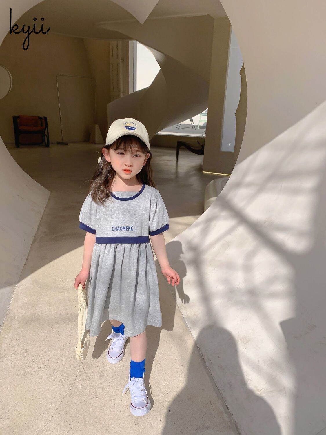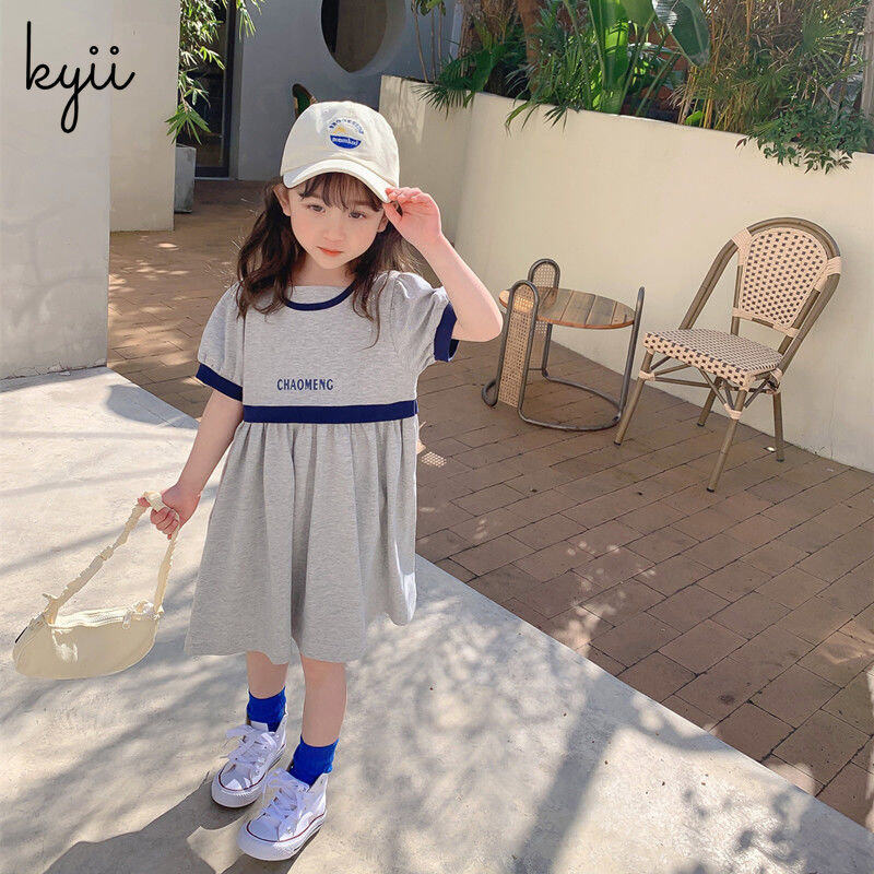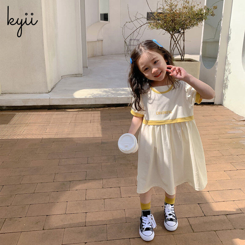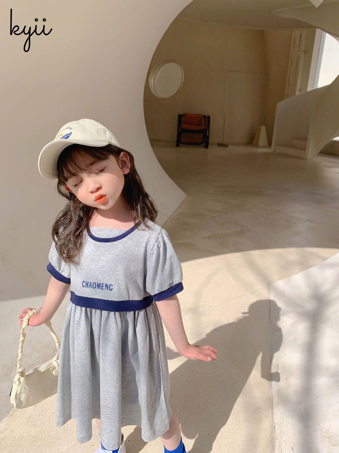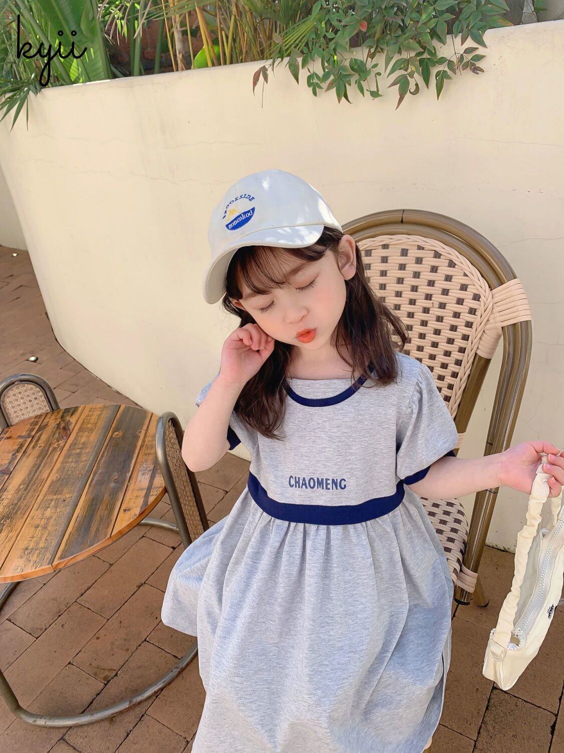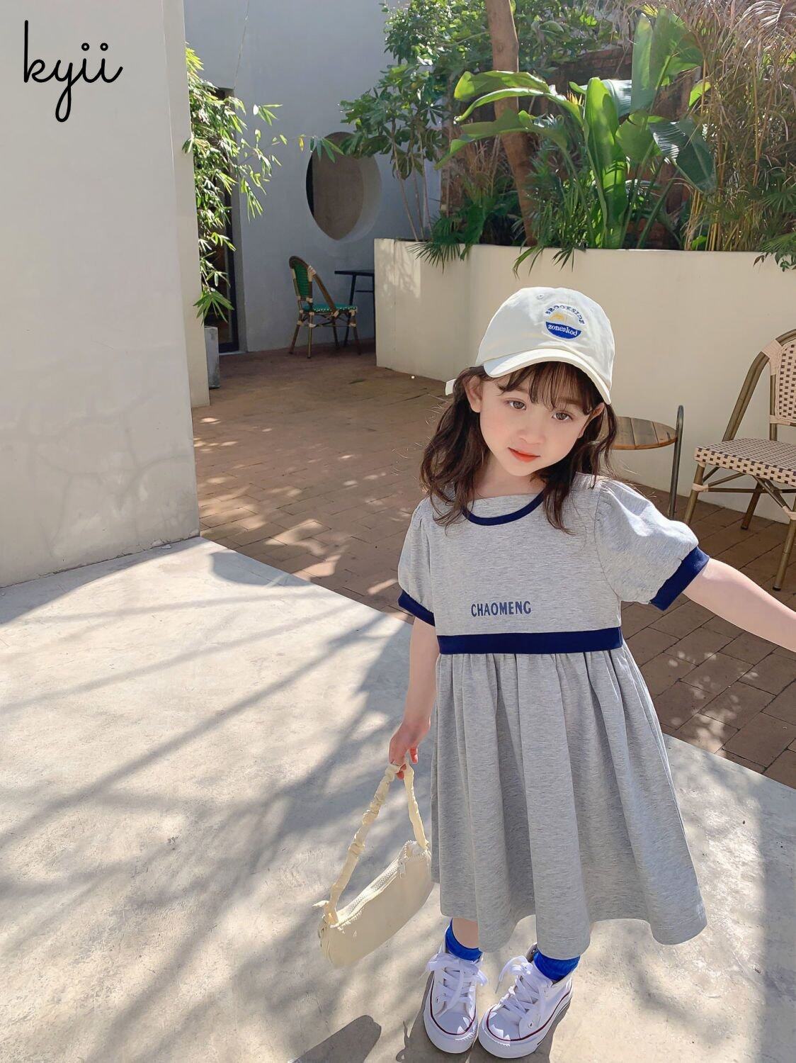 Kyii儿童女孩夏季圆颈连衣裙休闲宽松连衣裙kyii0064