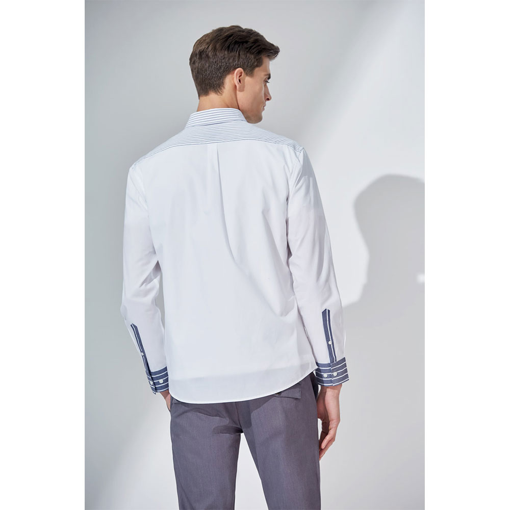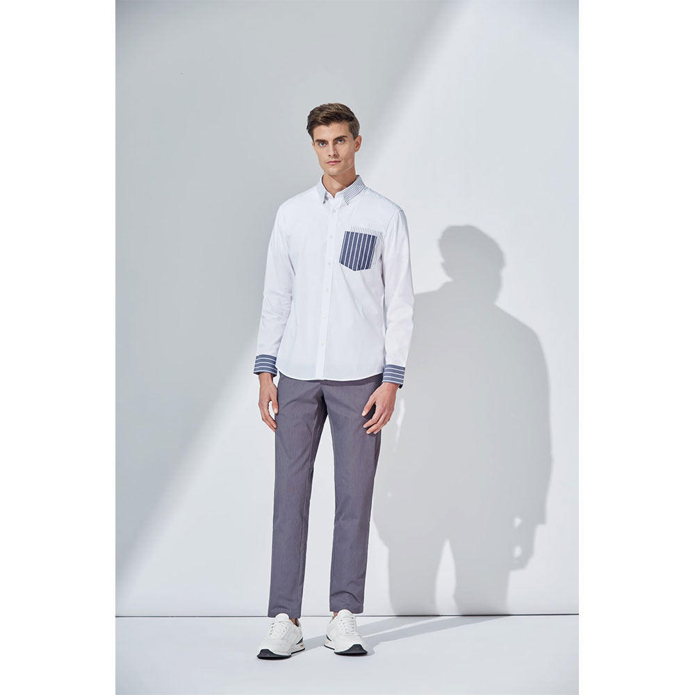 G2000男士智能拟合条纹块口袋衬衫