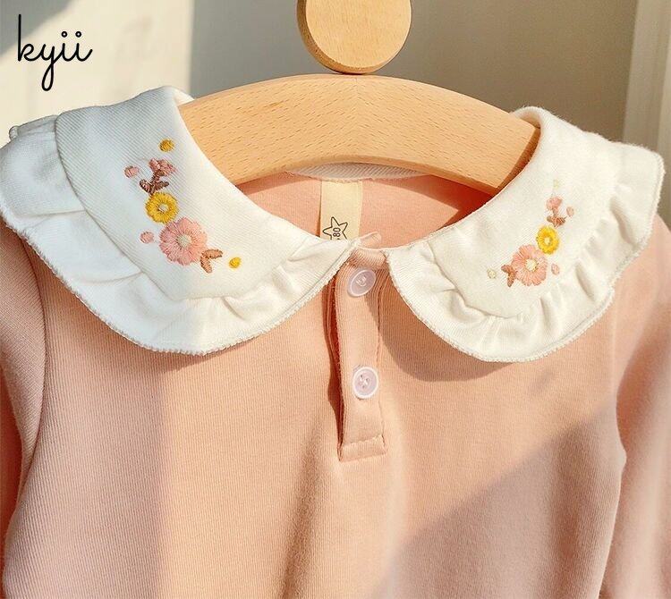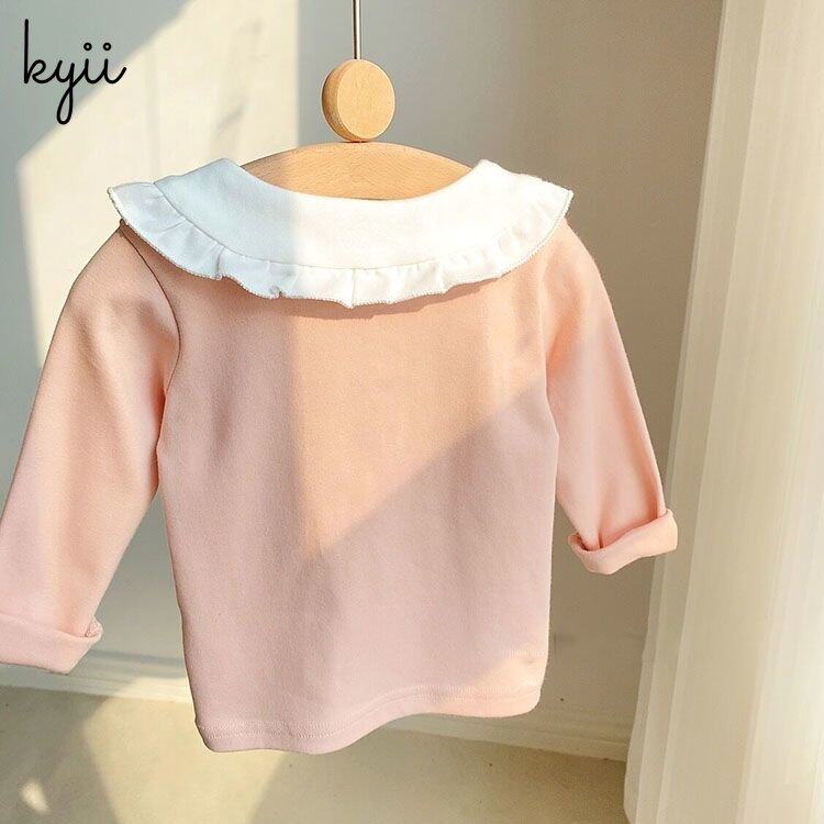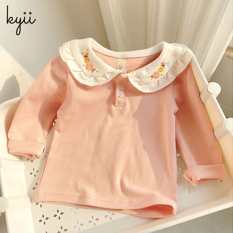 Kyii秋季韩国儿童时尚衬衫衣领长袖衬衫女孩休闲kyii0076