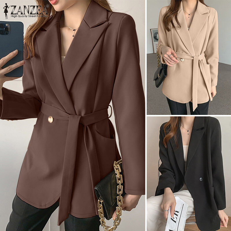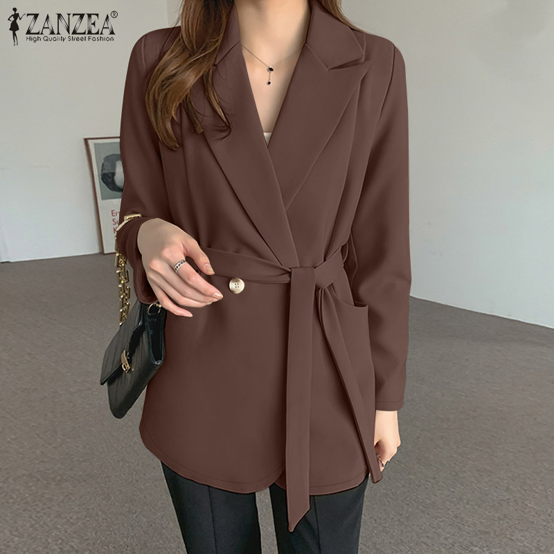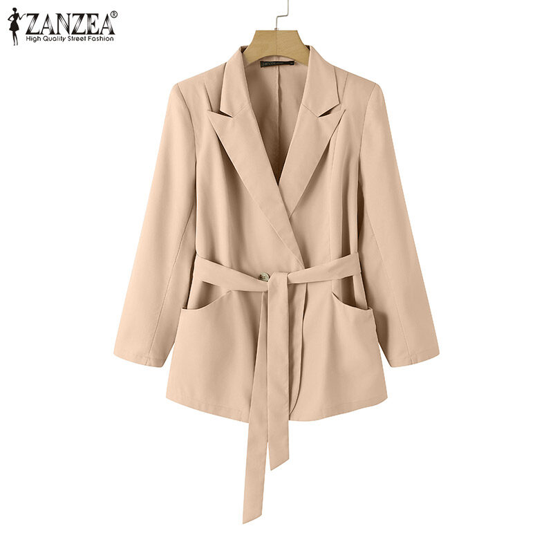 Zanzea妇女正式办公室OL Plain Fashion Blazer夹克夹克鞋带up Business大衣#11