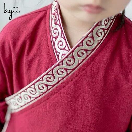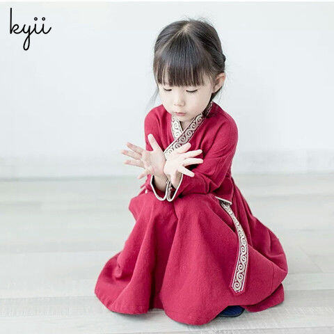Kyii儿童女孩V领连衣裙休闲宽松长袖连衣裙Kyii0086