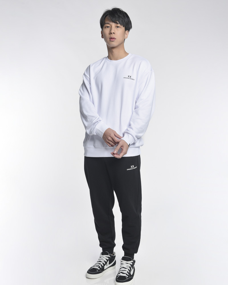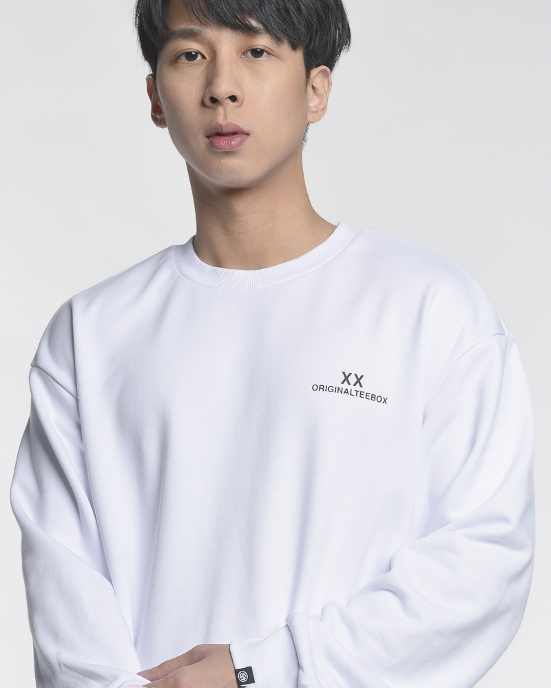 Yishion Men超大固体颜色长袖运动衫,带有“ OriginalTeebox”徽标(白色)