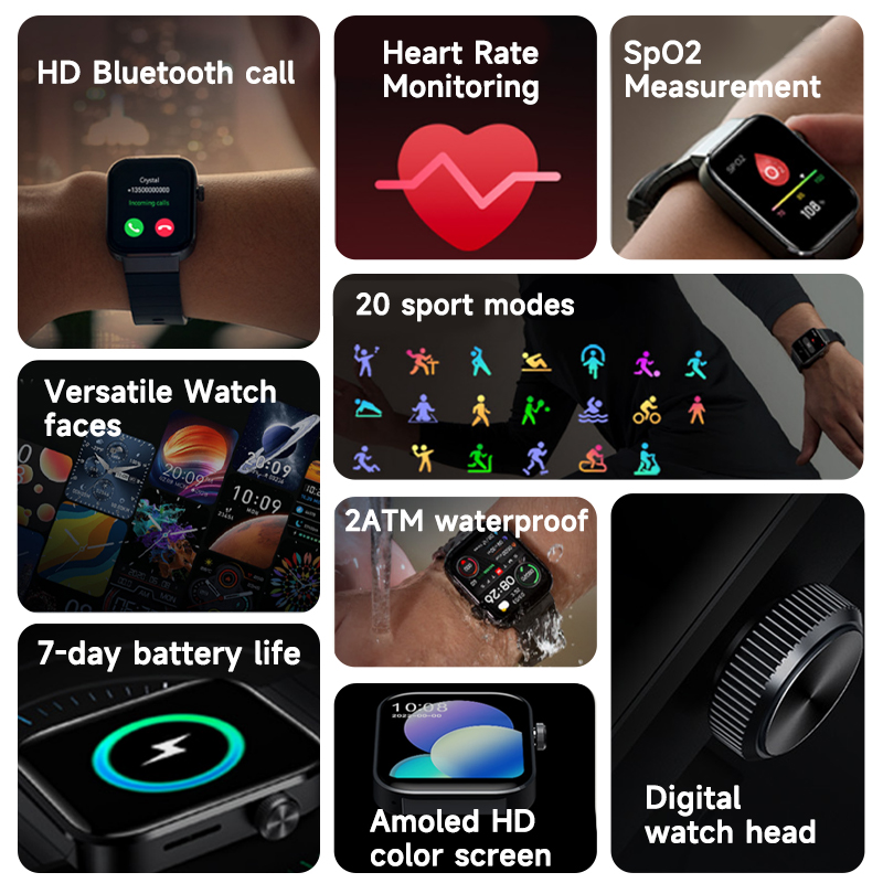 Mibro T1智能手表蓝牙呼叫1.6英寸AMOLED显示SPO2传感器全球版本