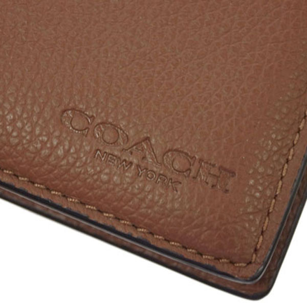 教练男士钱包里的礼品盒紧凑型ID运动小腿礼物深色马鞍棕色#f64118