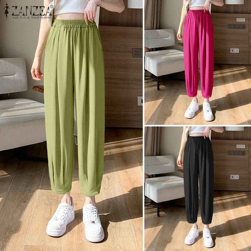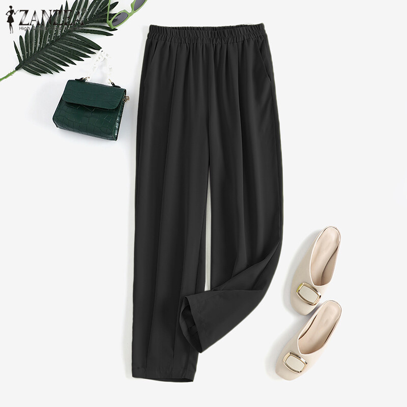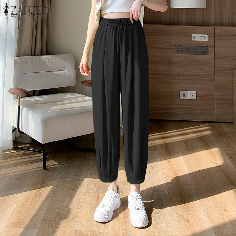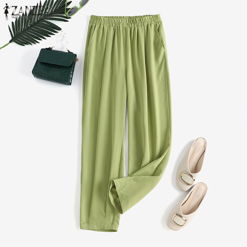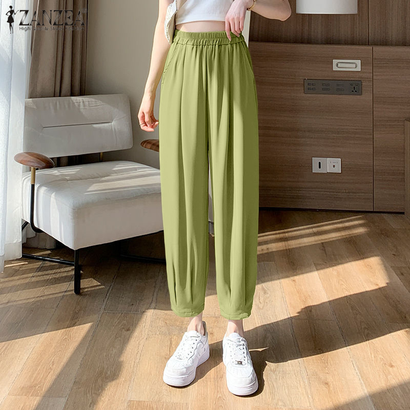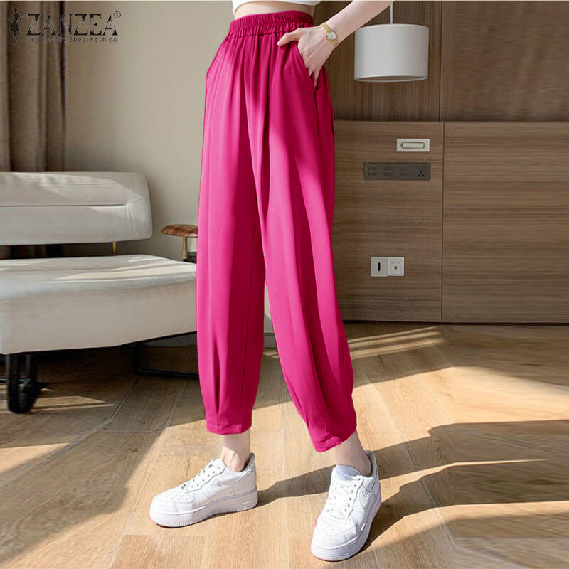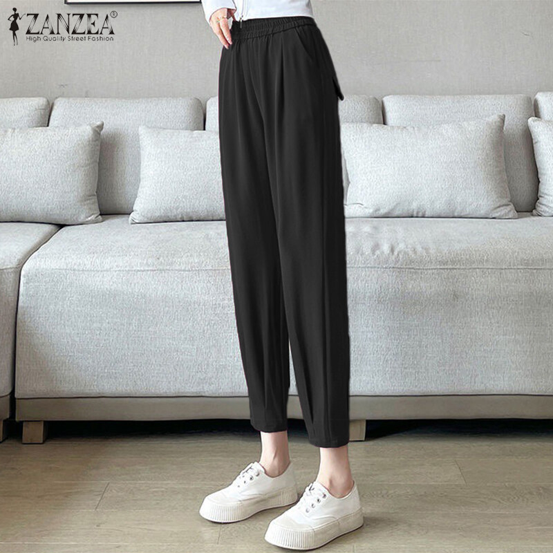 Zanzea妇女休闲松散的弹性腰部奇诺裤子女士正式后宫裤子#8