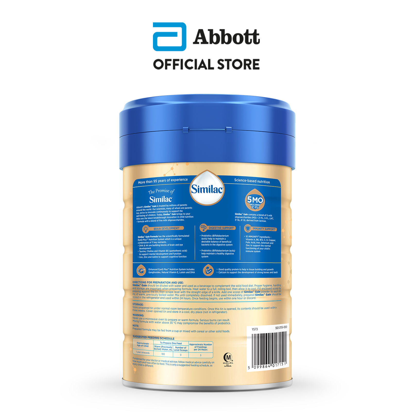 Similac增益5MO阶段3长大的婴儿奶粉配方奶850克(1年开始)