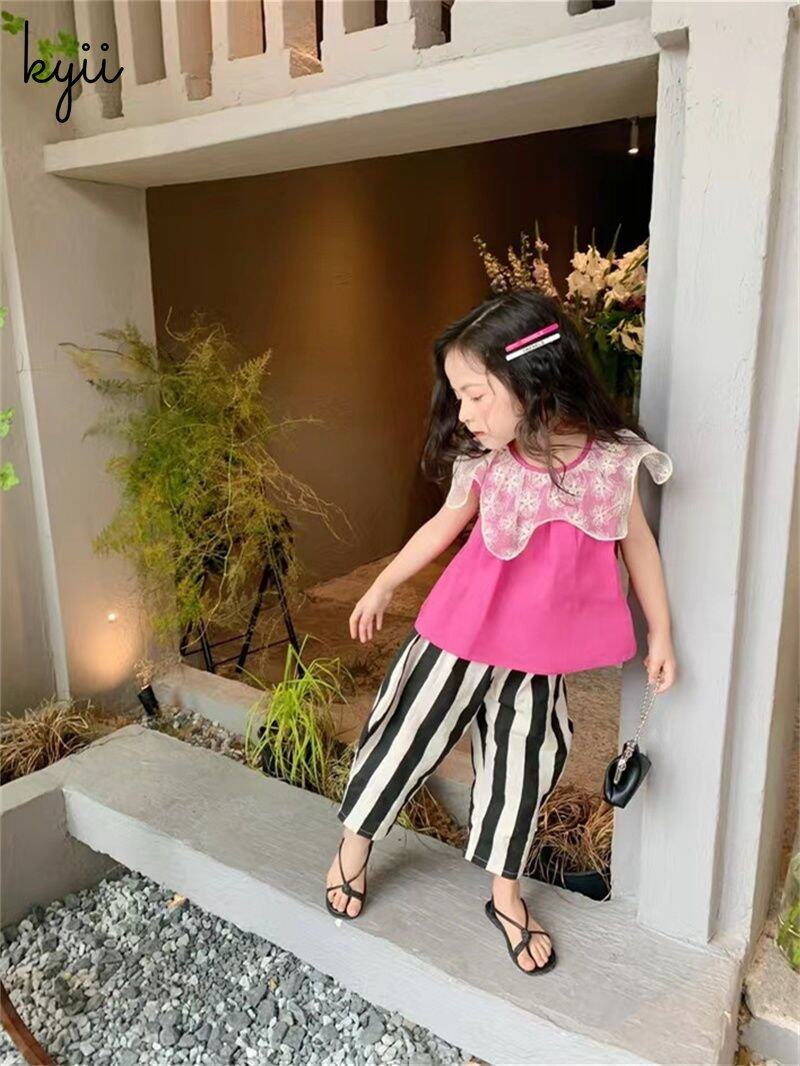 KYII女孩设置两件套无袖圆颈子顶级孩子Set Kyii0152