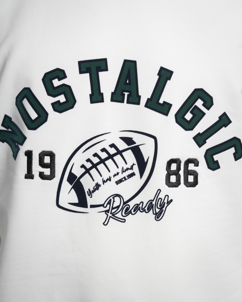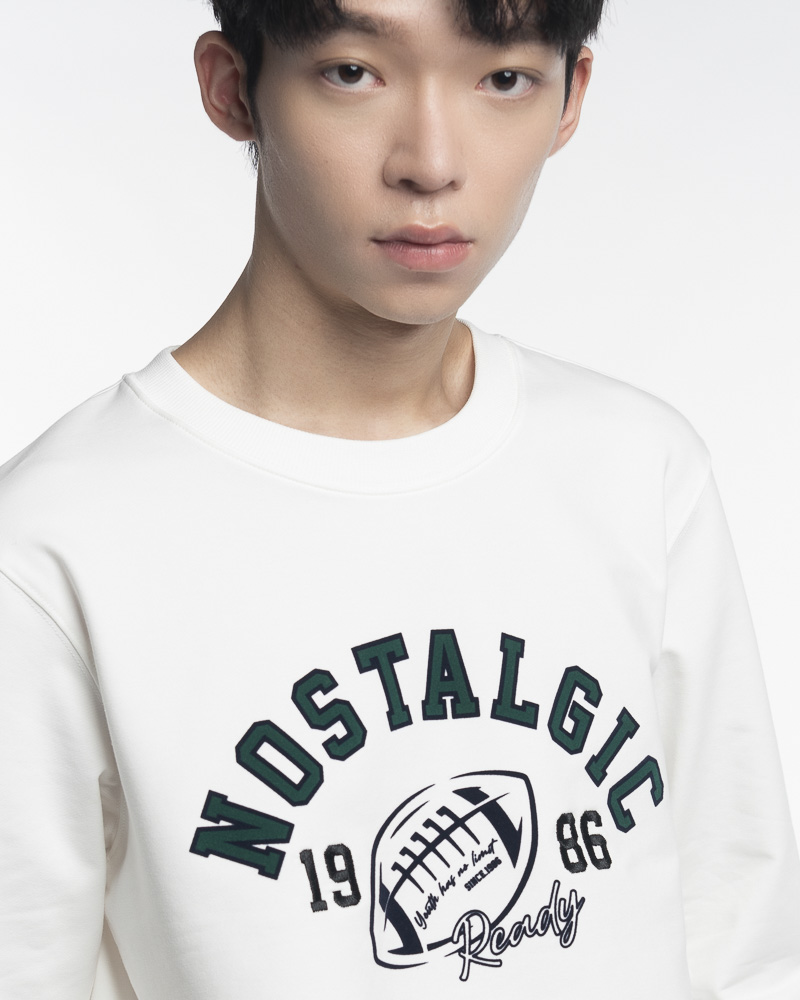 Yishion Men纯色长袖运动衫,怀旧口号(白色)