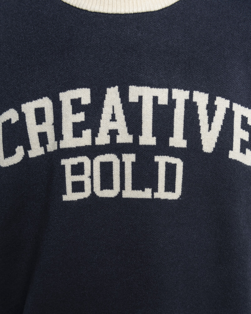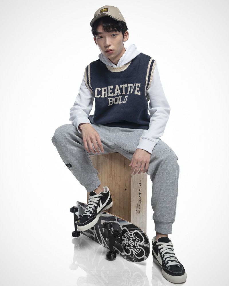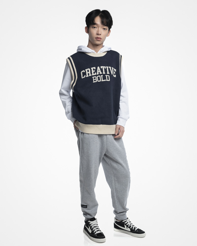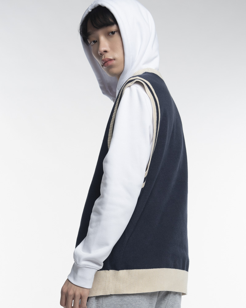 Yishion男子针织圆形颈部大学背心,不对称对比彩色领口和创意口号(dk。Blue)