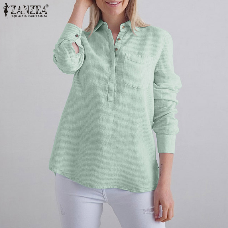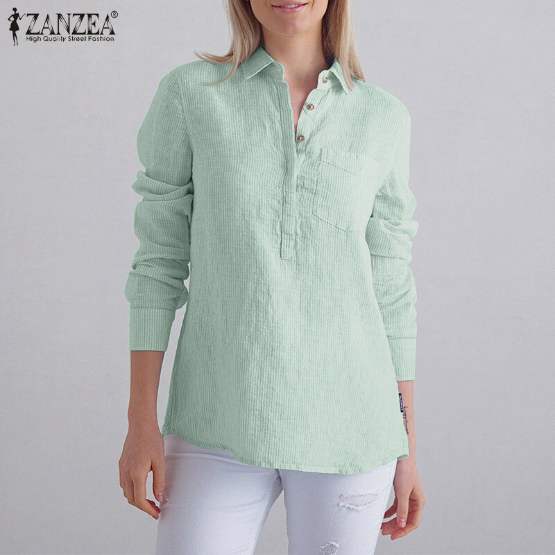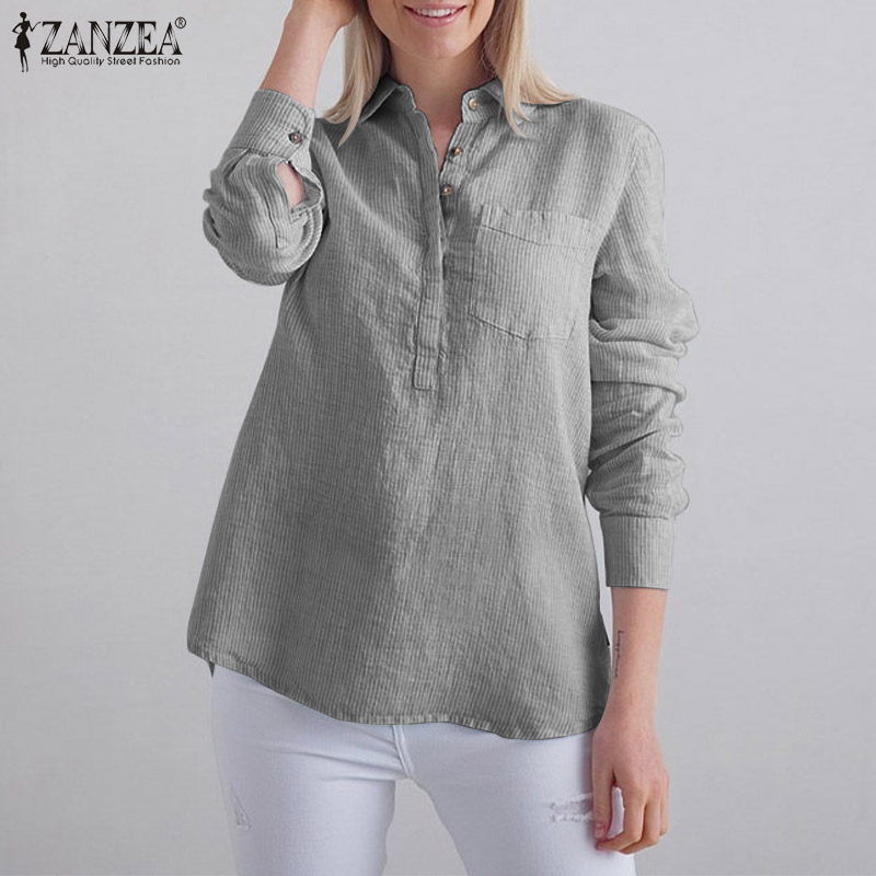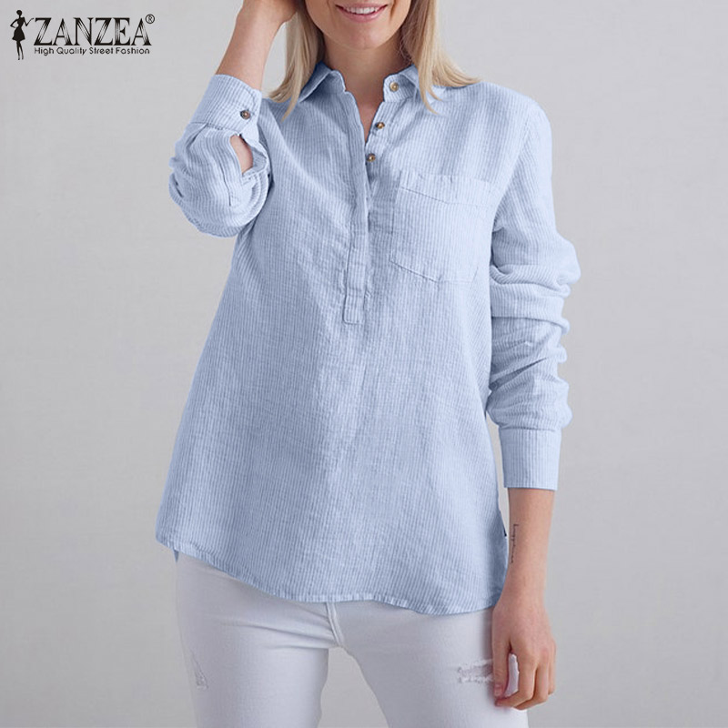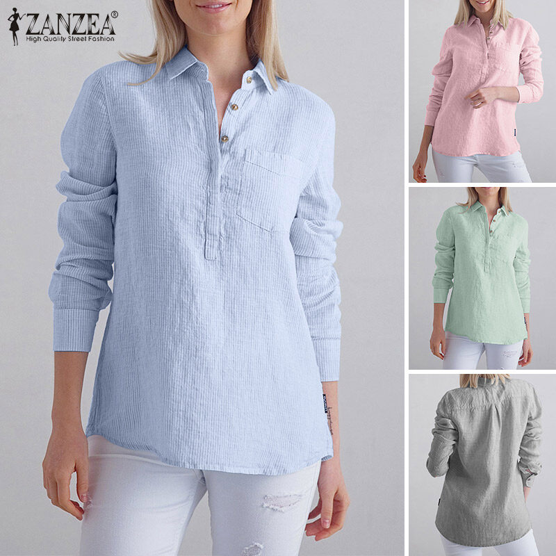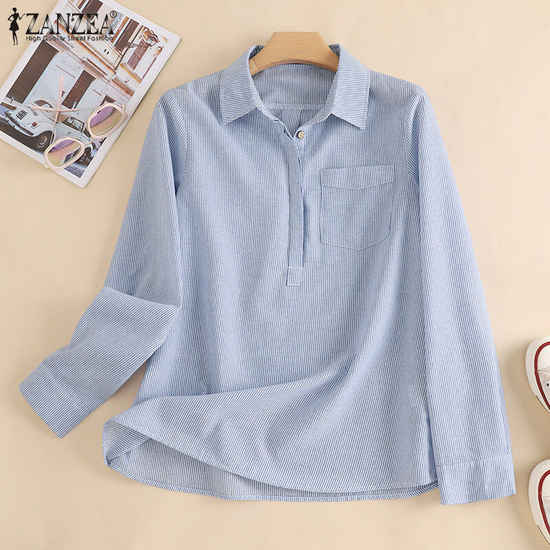 Zanzea妇女条纹领长袖T恤衫上衣休闲工作衬衫松散的上衣#15