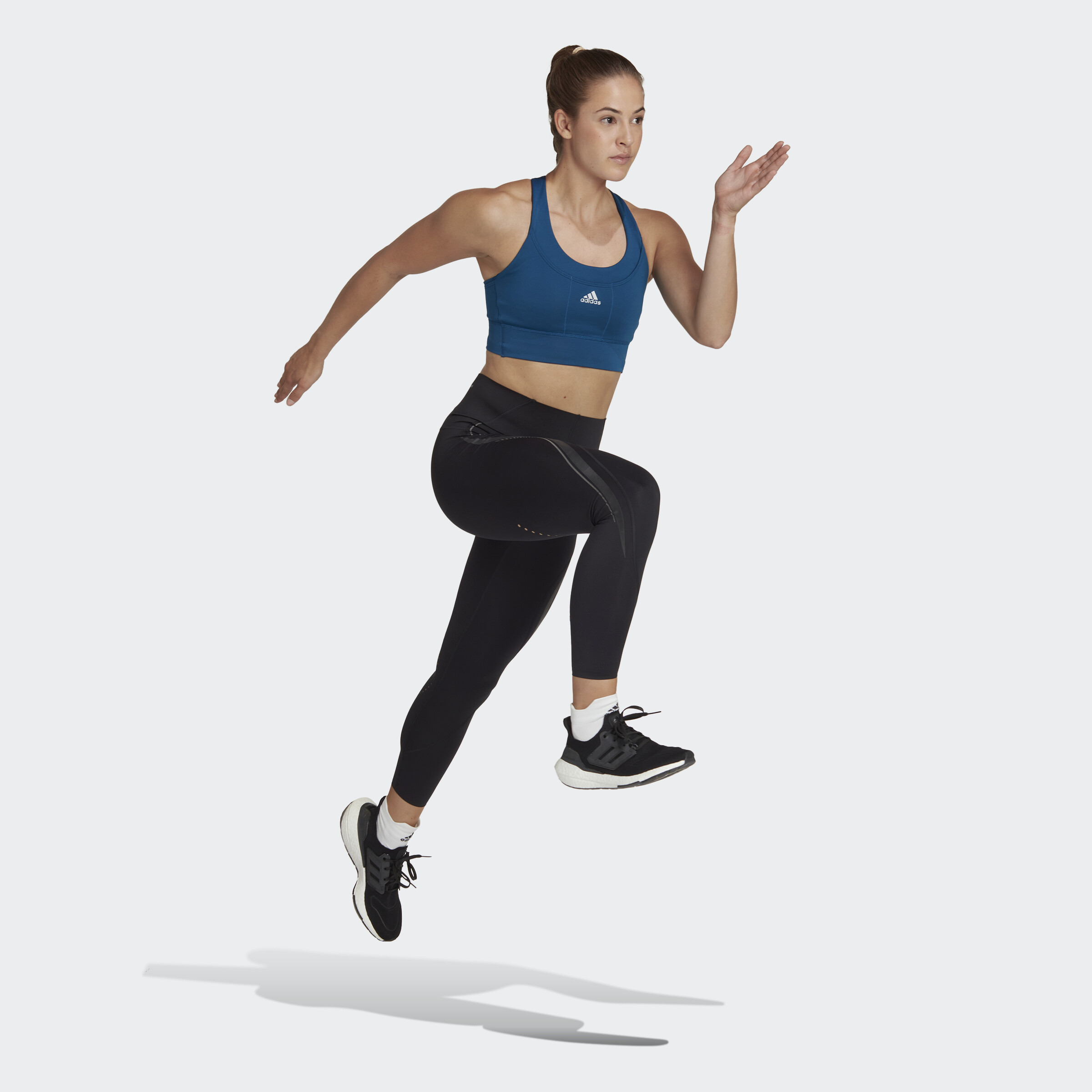 With hidden pockets for handy storage, this adidas medium-support bra has you covered for road runs and hikes. Rack up the kilometres in comfort, thanks to a design that conforms and stretches to your shape. Stay dry when you (or the weather) turn up the heat with moisture-absorbing AEROREADY. Head out at dusk or dawn with details that reflect light. Made with a series of recycled materials, and at least 60% recycled content, this product represents just one of our solutions to help end plastic waste.