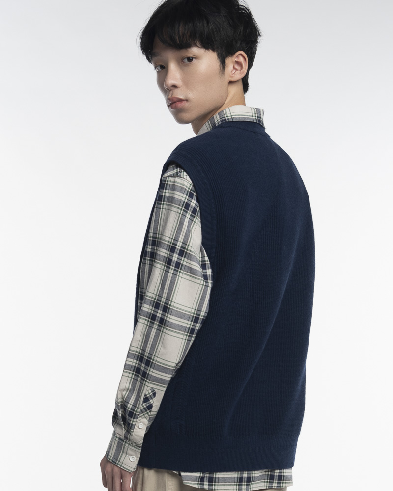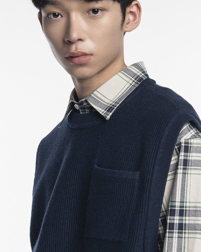 Yishion男子针织圆脖子背心,胸口口袋和肋骨下摆(深蓝色)