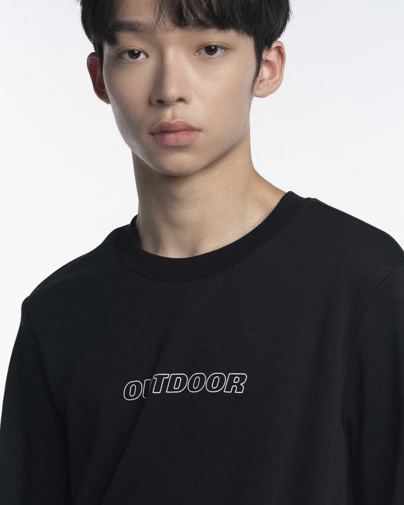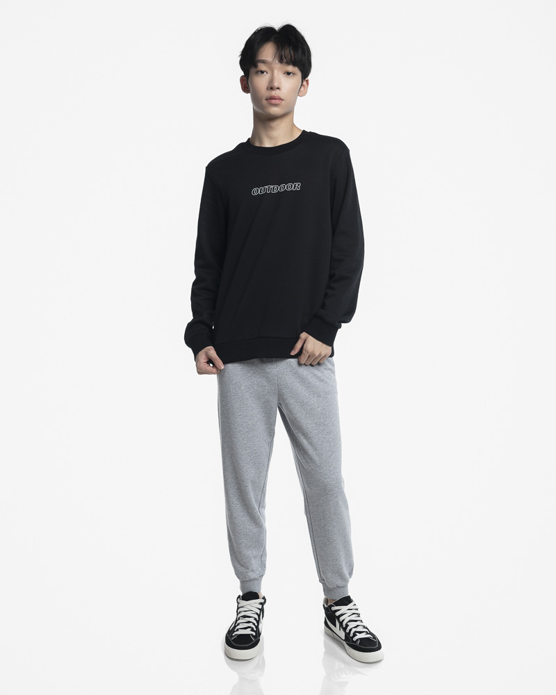 Yishion Men固体色长袖运动衫,带有户外口号(黑色)