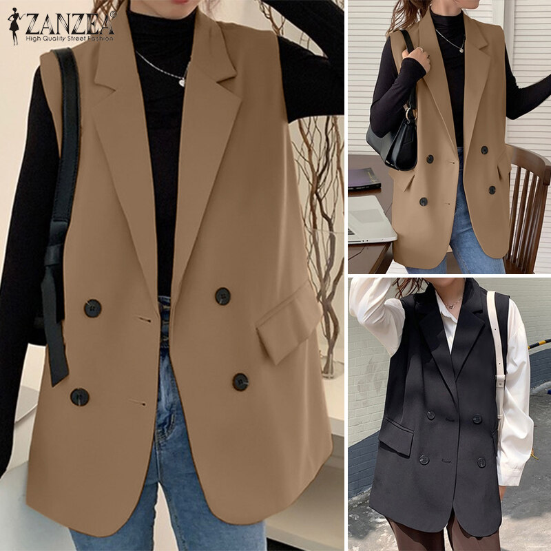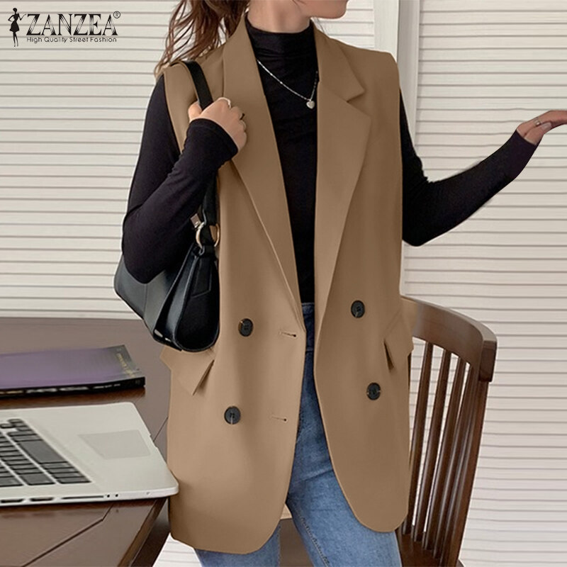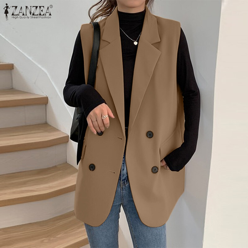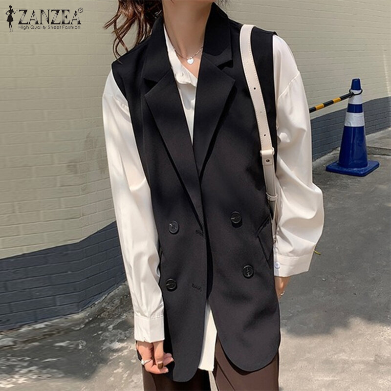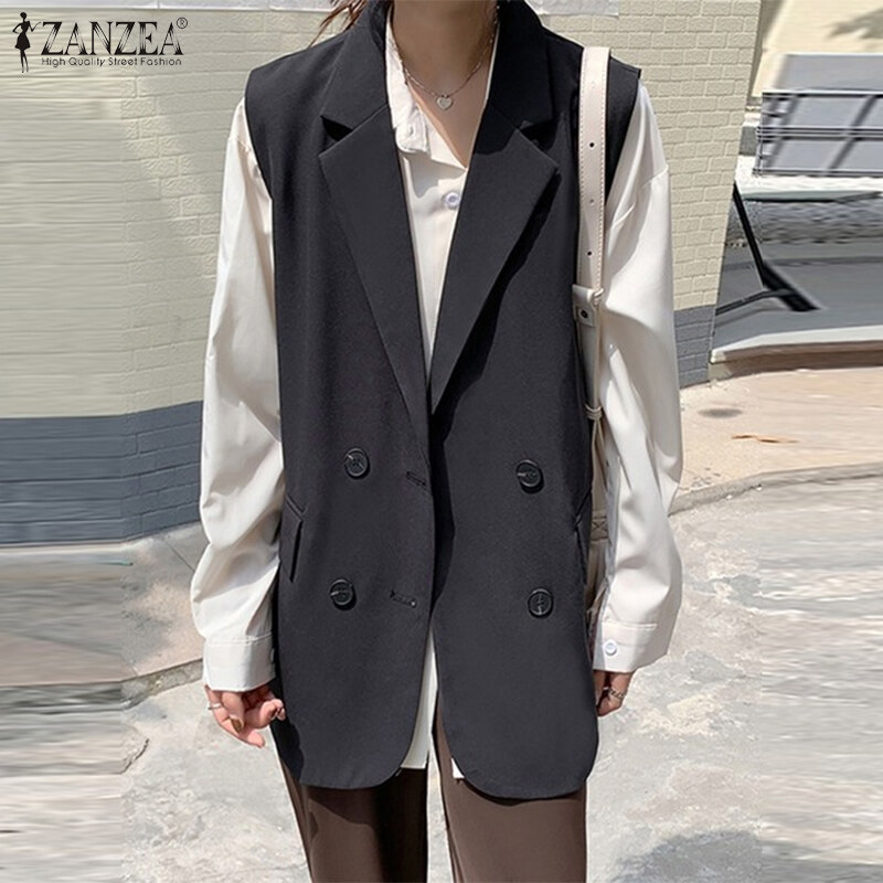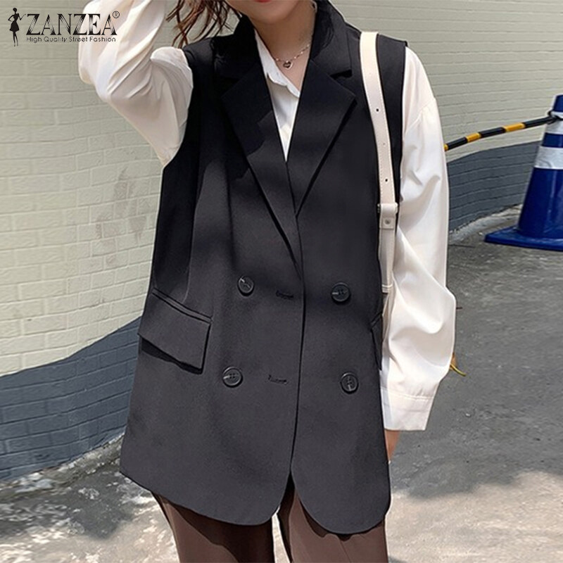 Zanzea韩国风格的女性通勤上下划线的无袖外套双排扣固体背心#10