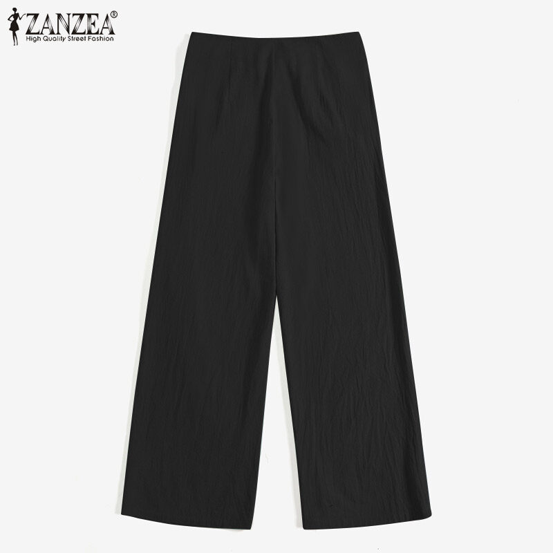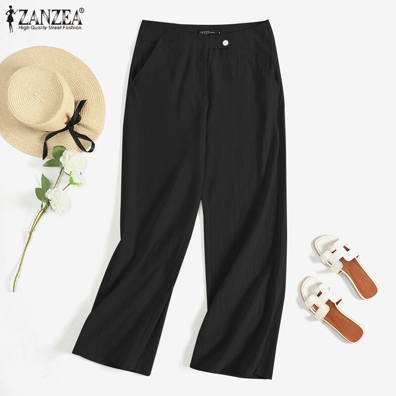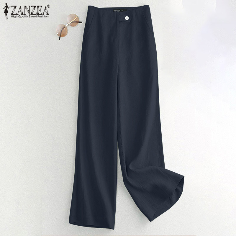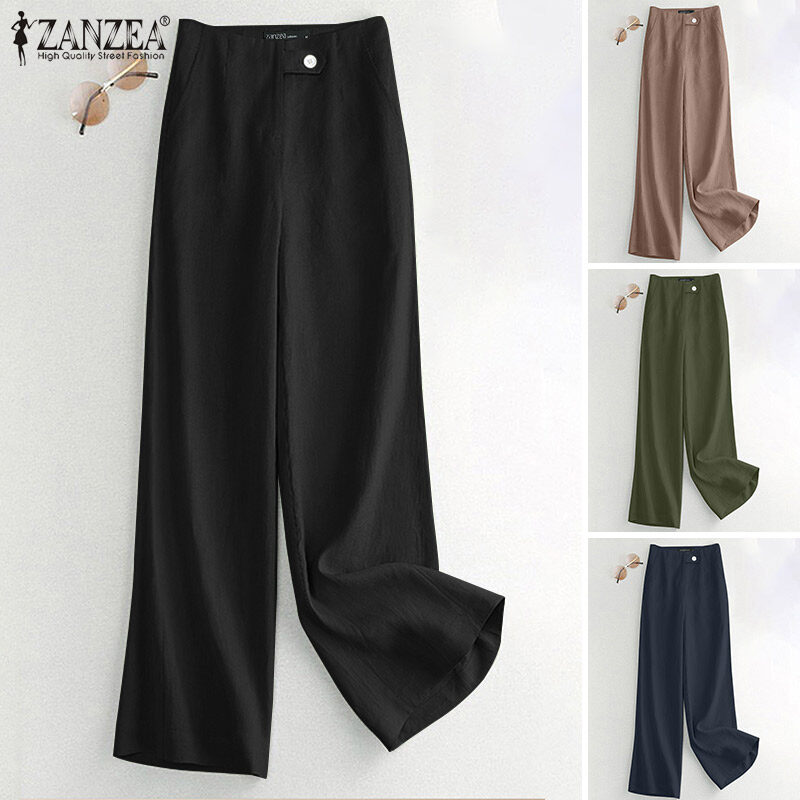 Zanzea妇女复古棉质侧袋裤休闲宽松的普通前拉链直裤#2