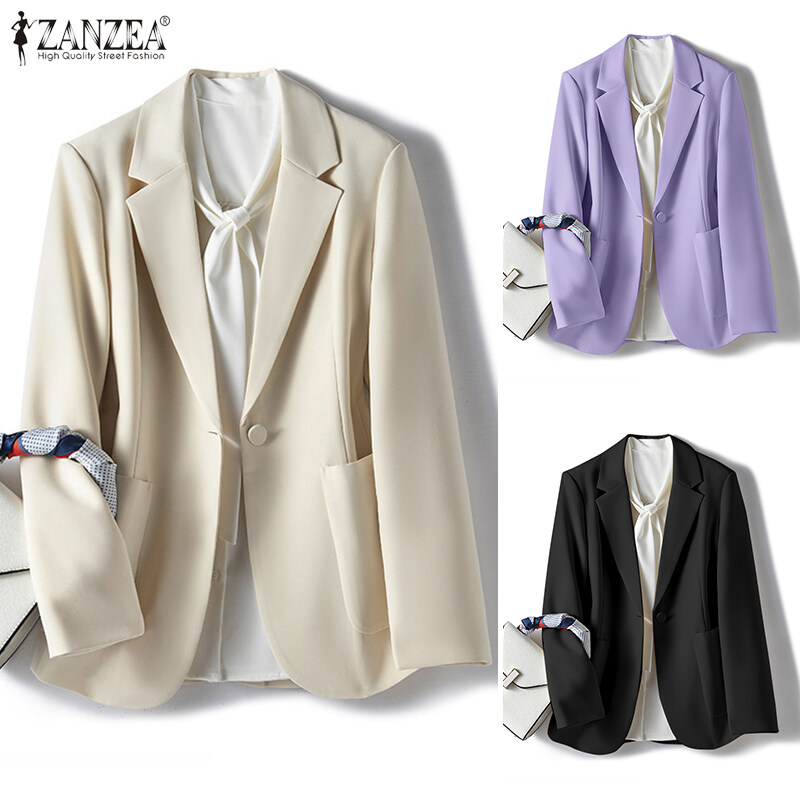 Zanzea妇女正式工作办公室Lapel Collar Long Sleeve Solid Coats Busishing Leisure Lesiure Button Up西装外套#2