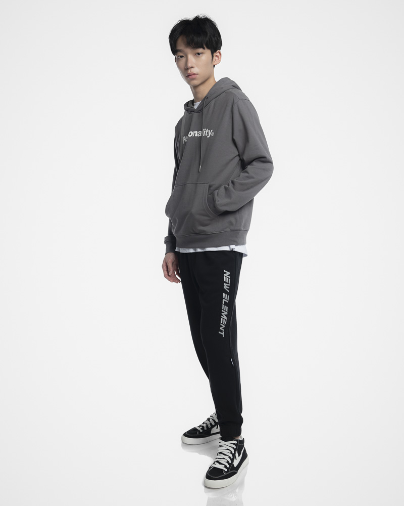 Yishion男士固体套头衫带有袋鼠口袋和个性口号(dk。灰色)