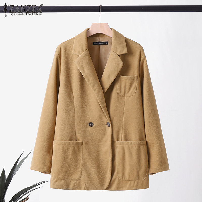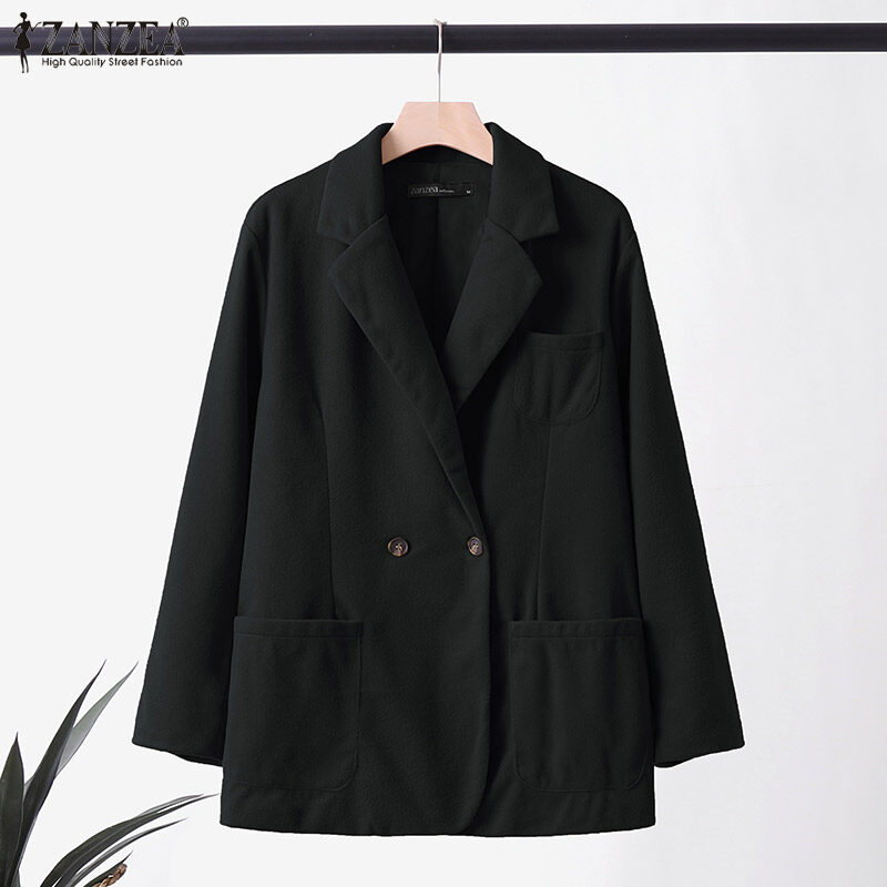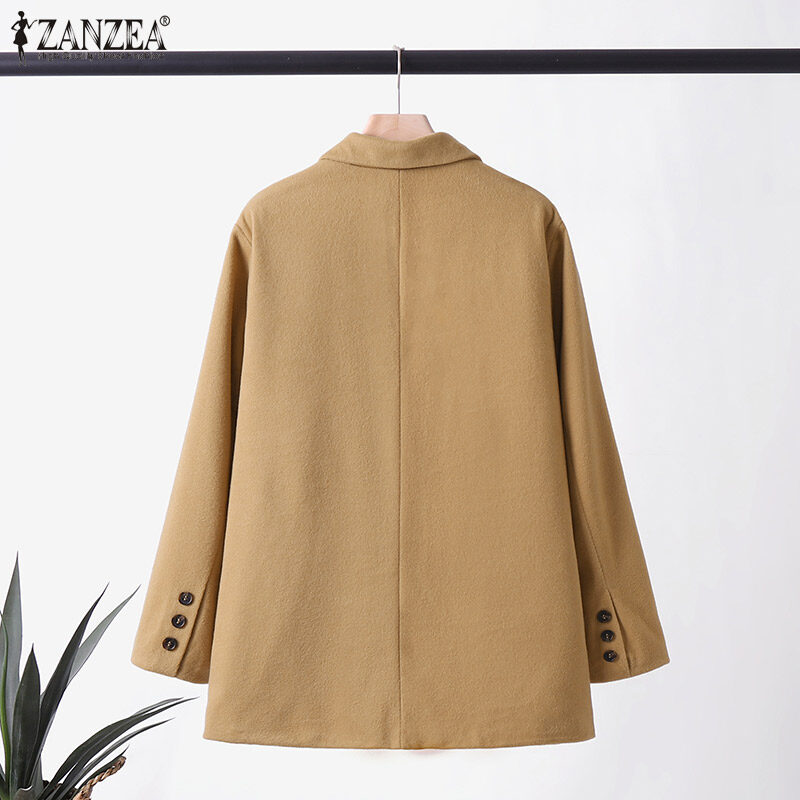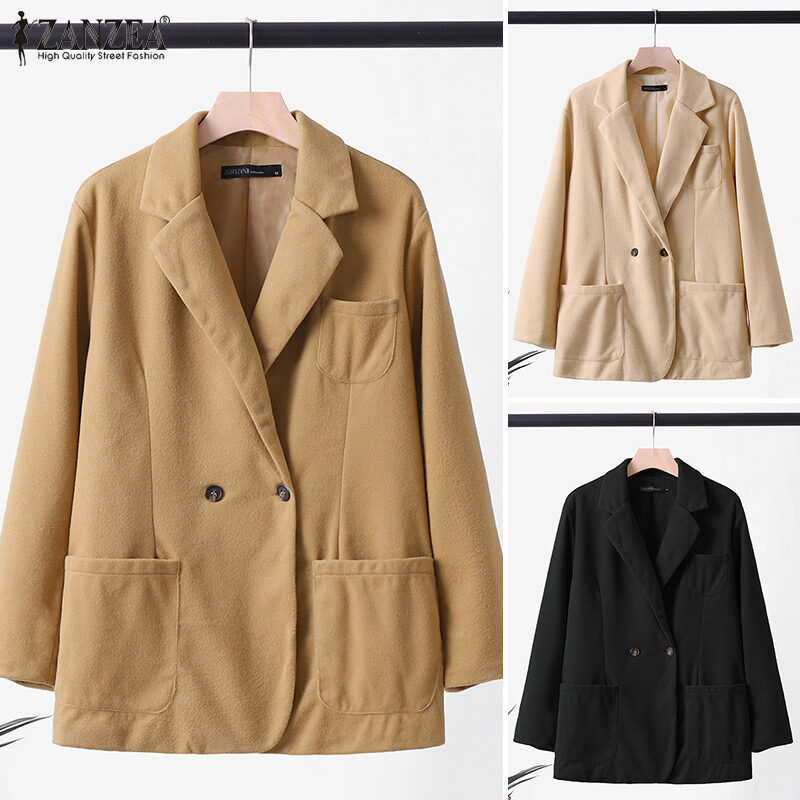 [清仓销售] Zanzea妇女商务长袖按钮上衣正式Opent前夹克纯西装外套#3 CLE