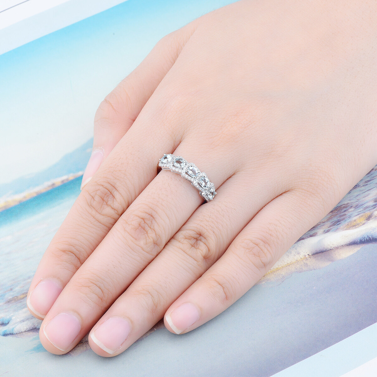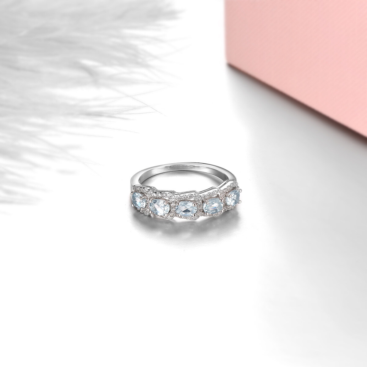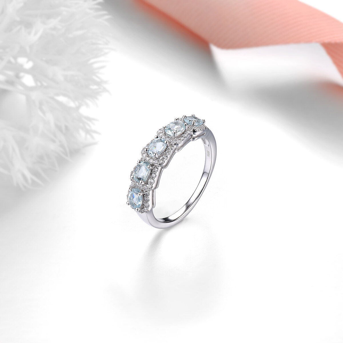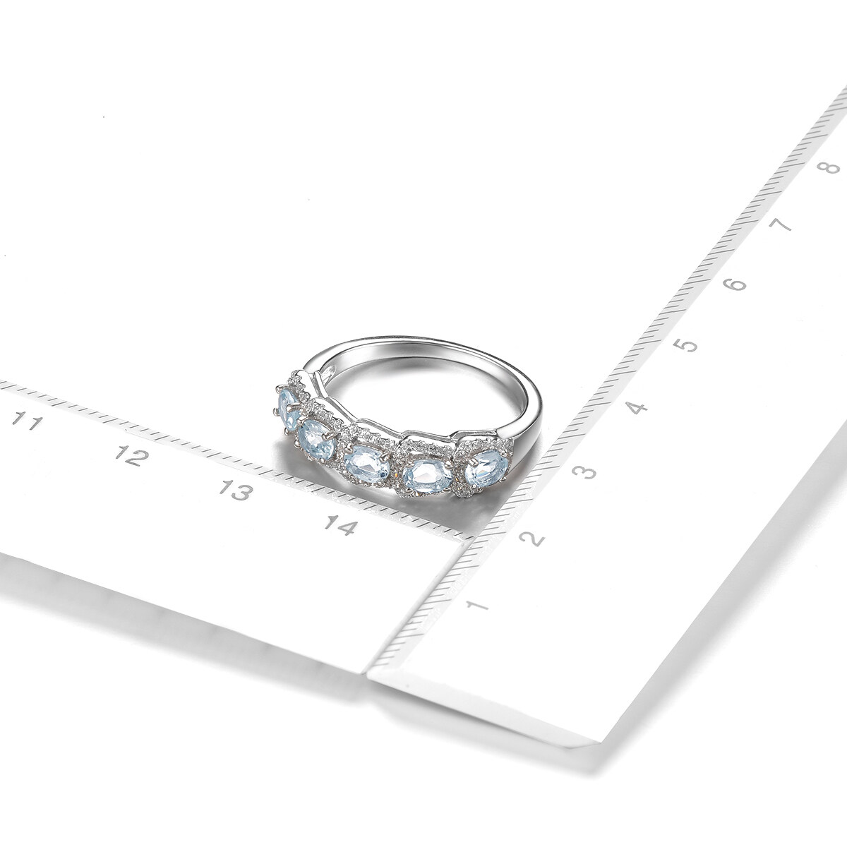银色S925戒指真实天然海蓝宝石多宝石设计女士女士顶级质量风格的新年礼物
