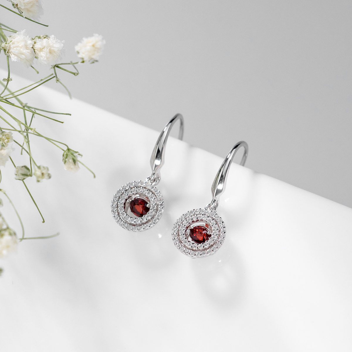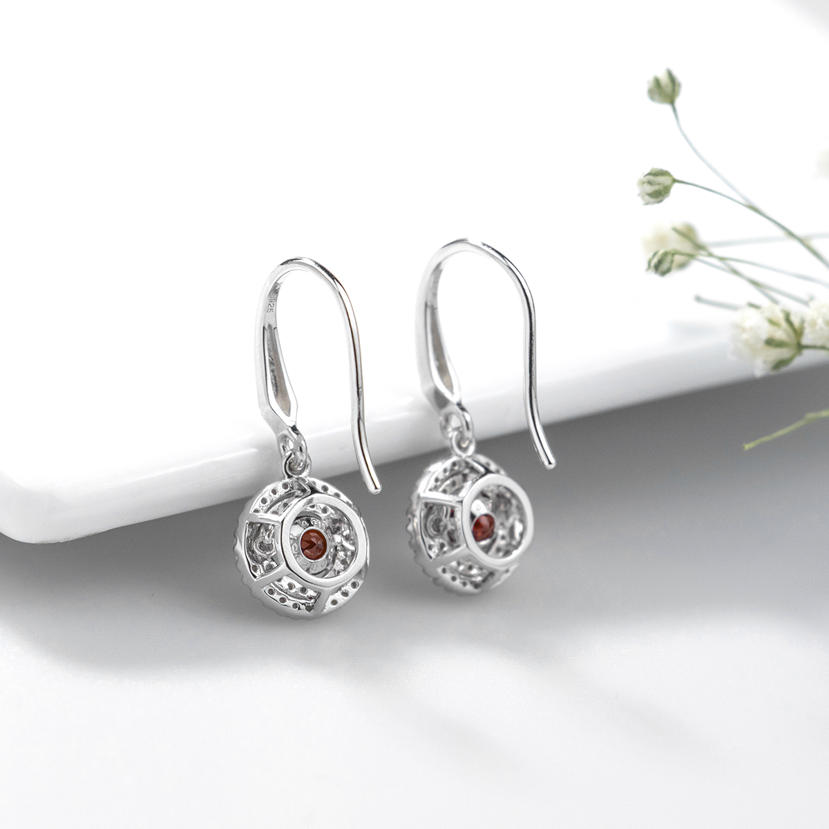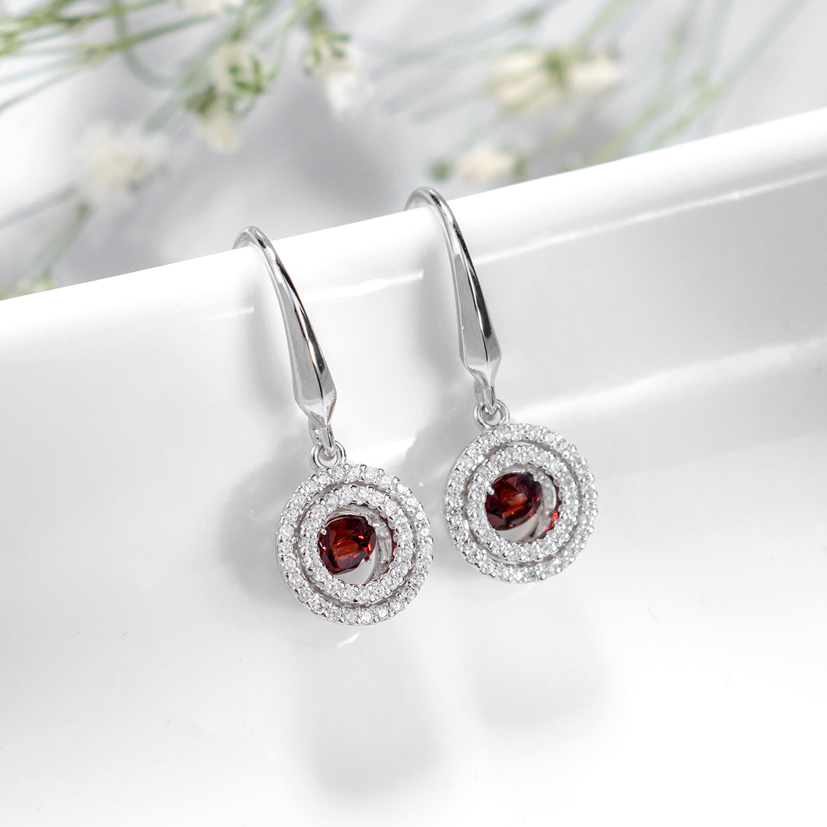 原始纯银925滴耳环天然红色石榴石宝石优雅的女士珠宝生日礼物