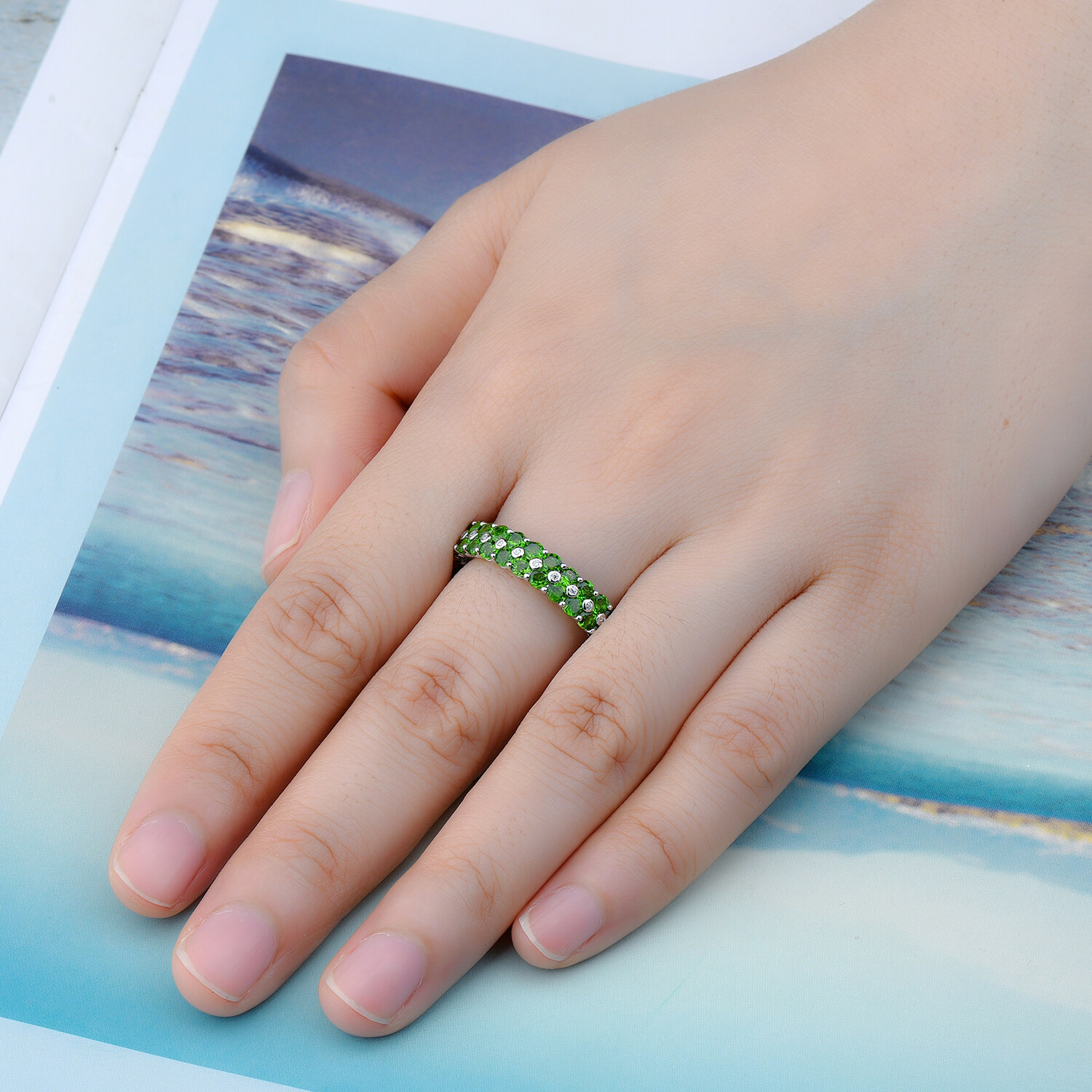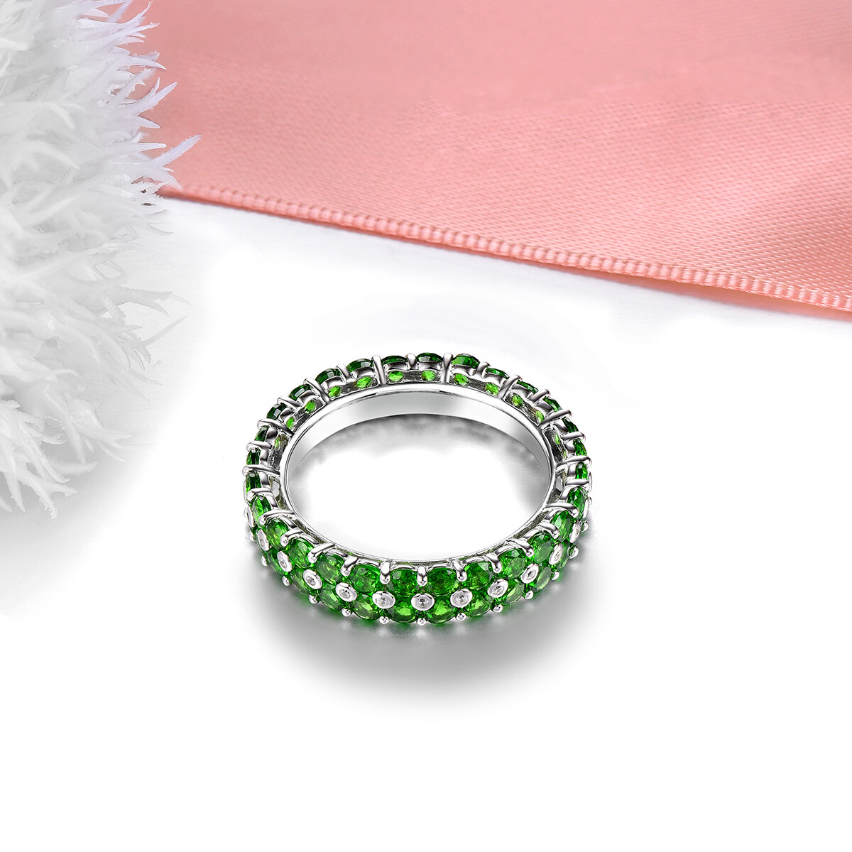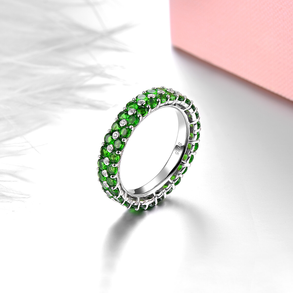 4.5摄氏原始固体纯银925戒指自然铬圆圆环永恒戒指绿色宝石银925永恒戒指女士珠宝婚礼礼物