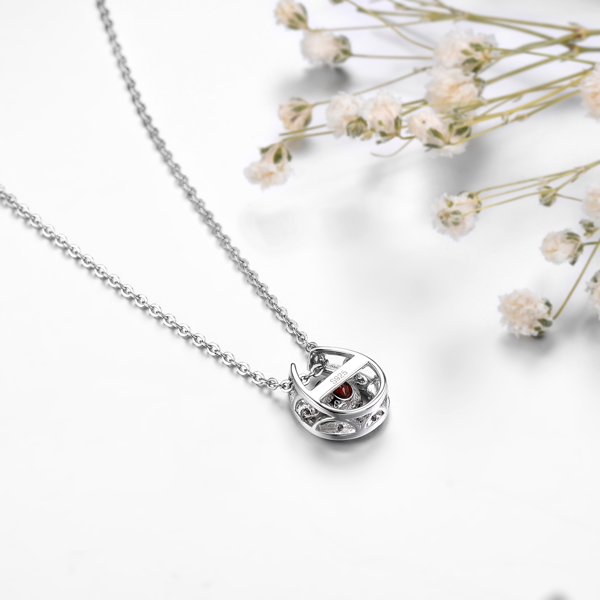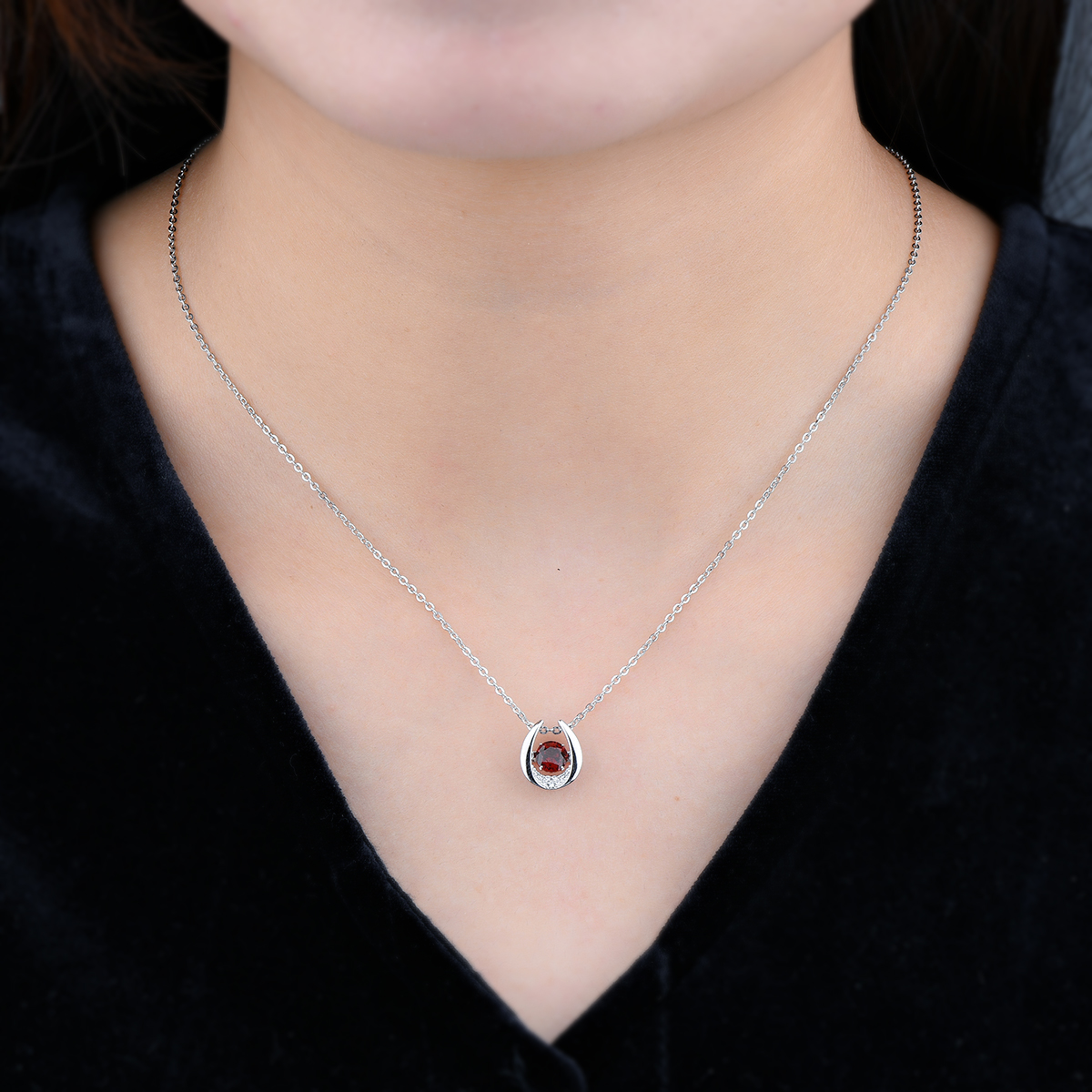 A true solid 925 sterling silver natural garnet pendant, gemstone pendant, female 925 silver jewelry gift, birthday