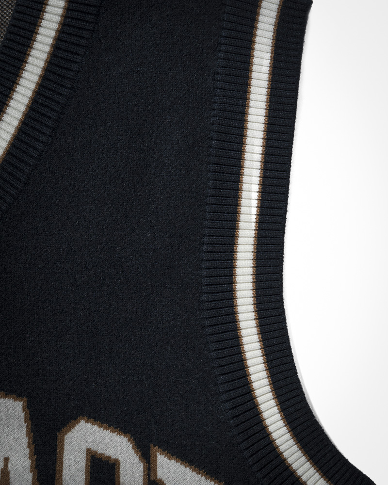 Regular Knitted V Neck Varsity Vest with Contrasting ColourNeckline and Hems. Comes with 'COURAGE' Slogan at the front. Made of cotton. Colours available: Dark Blue