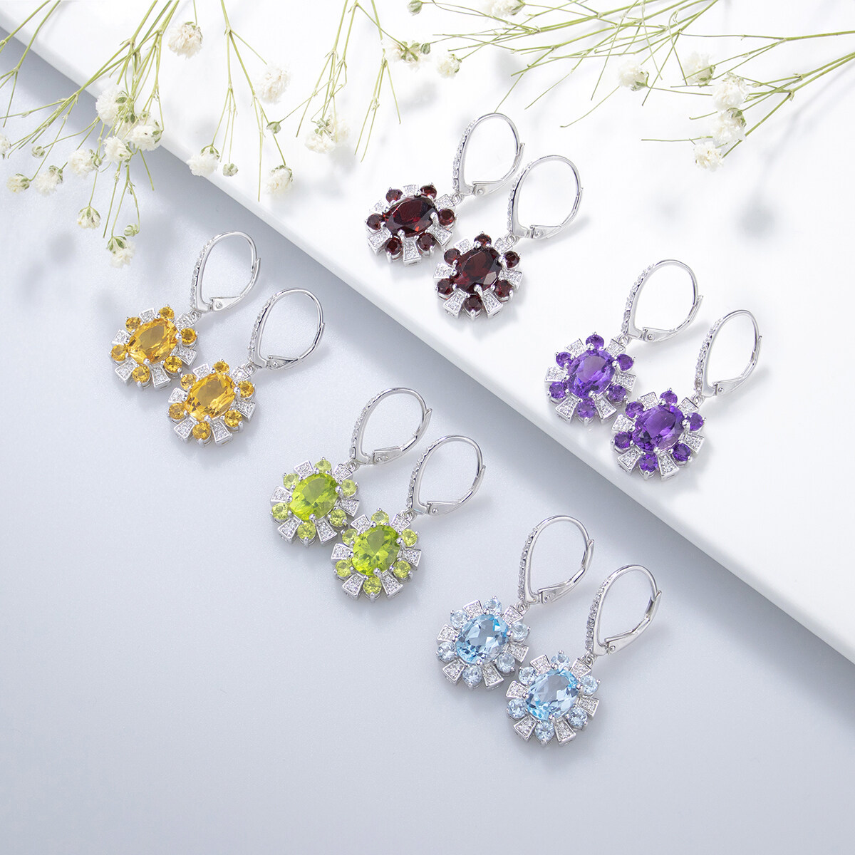 Sterling Silver S925原始滴耳耳环天然Topaz真正的宝石女性顶级品质Coloful珠宝婚礼
