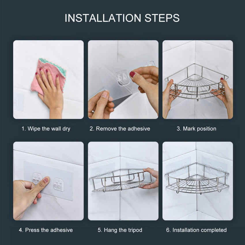 4. Two corner shower boxes will provide a large space for your bathroom or kitchen to store and organize your daily supplies. This bathroom shelf can hold up to 30 pounds of shower supplies and works great on smooth walls.