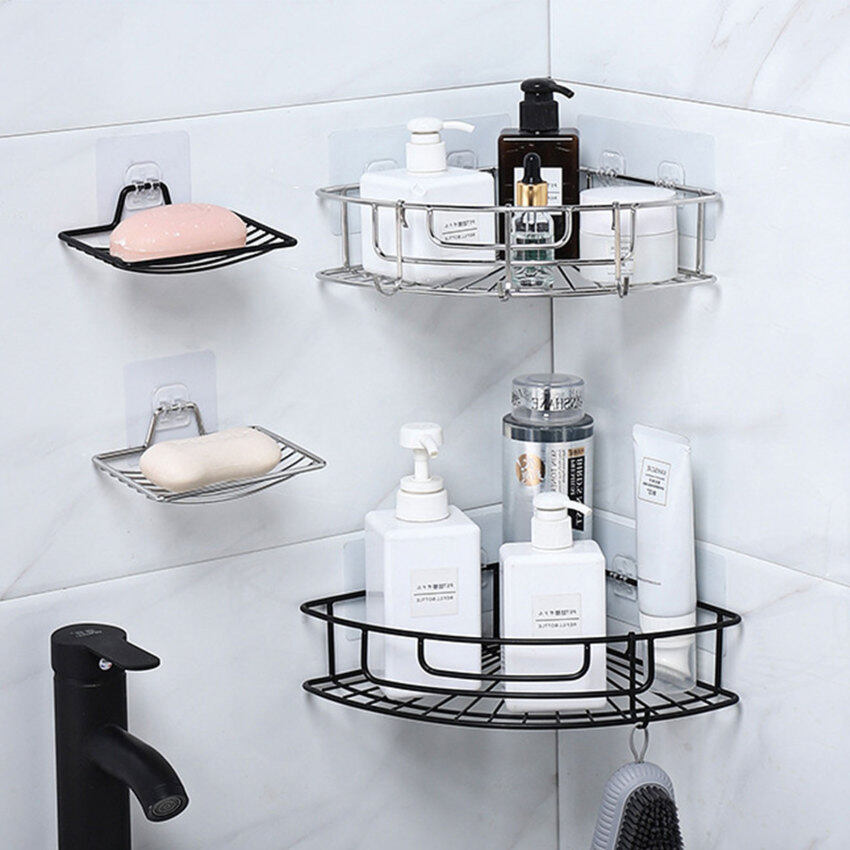 Stainless Steel Bathroom Triangle shelving wall Perforation-free single layer corner shelf Kitchen Bathroom storage basket