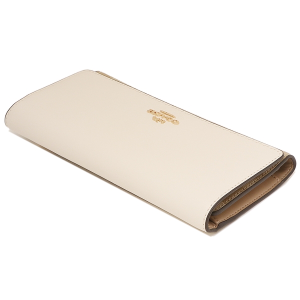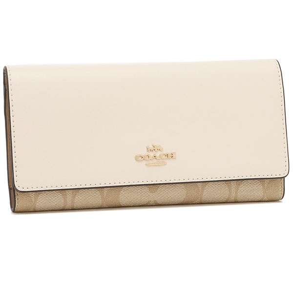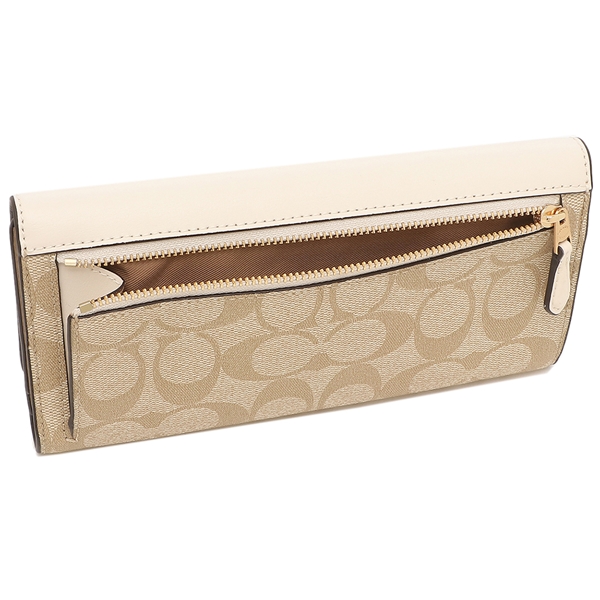礼品盒中的教练钱包长钱包苗条的三角钱包在签名帆布灯卡基粉笔白色#c5966
