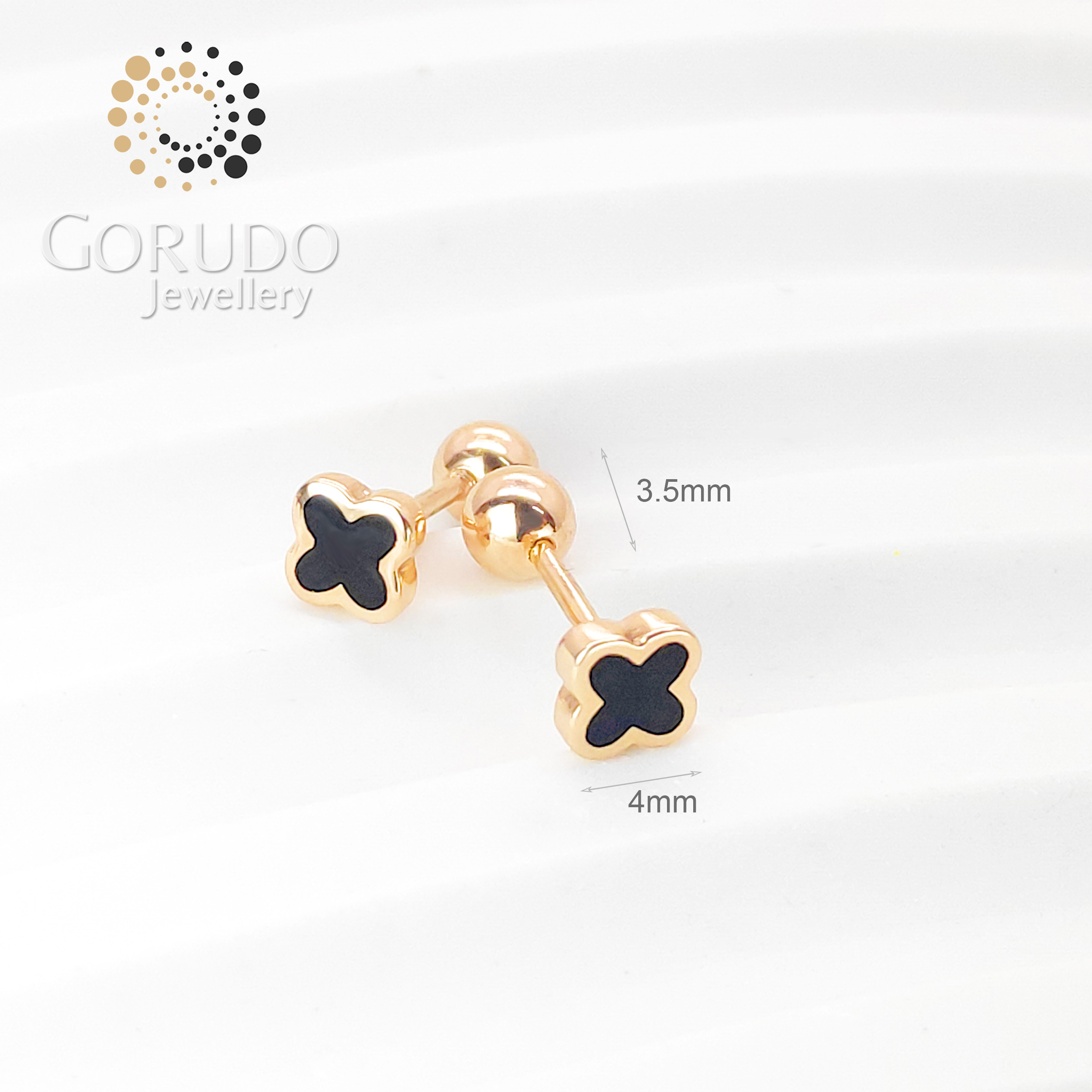 Gorudo珠宝750/18K玫瑰金迷你四叶设计螺钉 - FLS